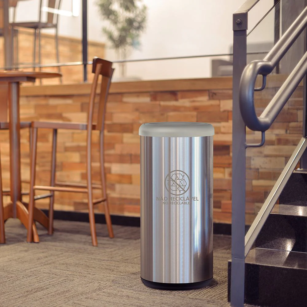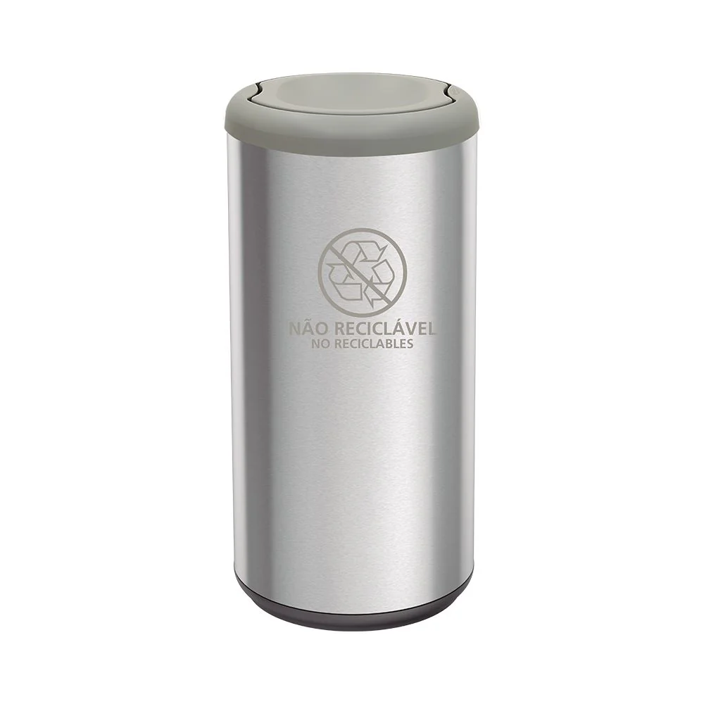 Papelera, elaborado en Acero Inoxidable, con capacidad de 40 litros, tipo de acero 304, espesor 0,4 mm, acabado en scotch brite, tapa basculante, su uso puntos ecológico, incluye etiqueta informativa no adherida.