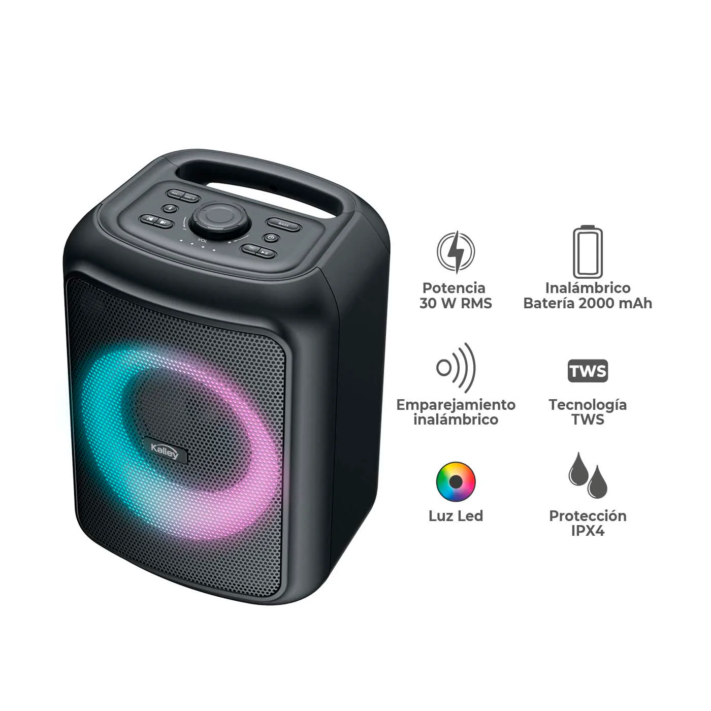 ¡Disfruta tus días al máximo con el parlante K-P30! Parlante portable con sonido envolvente, hasta 8 horas de batería. Equipado con tecnología TWS (True Wireless Stereo), puedes sincronizar dos parlantes para una experiencia estéreo increíble. Además, cuenta con entrada para memoria USB, puerto auxiliar y de micrófono, lo que lo hace perfecto para tus fiestas o reuniones. Su protección IPX4 garantiza resistencia a salpicaduras de agua, ideal para usar cerca de la piscina o en ambientes al aire libre. ¡El parlante que necesitabas! ¡Llévalo hoy mismo!