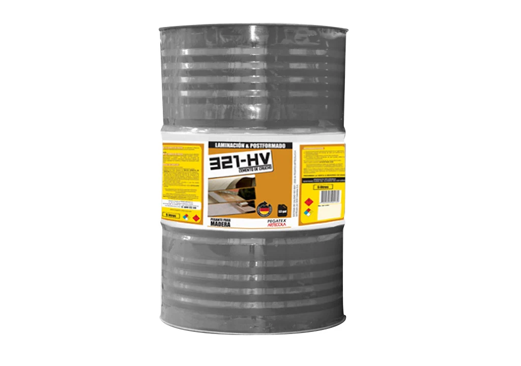 Pegante 321 53gl diseñado especialmente para la industria del mueble y la madera, en procesos de laminado, enchapado y postformado, entre otros. Ideal para la unión de sustratos tales como chapilla, laminados estructurales de alta presión tipo Formica®, cantos de PVC o caucho sobre aglomerados de fibra, MDF o triplex. Enchape Laminación Fijado de Cantos, postformados y tapicerías.