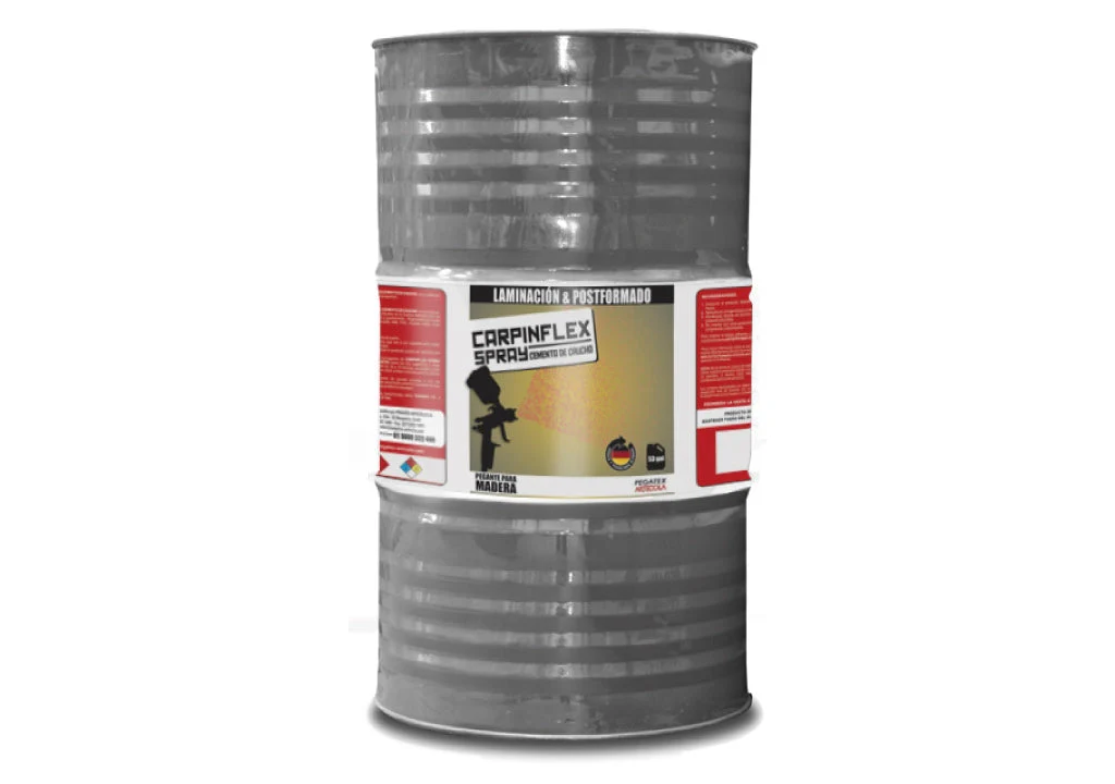 Pegante carpinflex spray 53 galones es un producto desarrollado para ser utilizado en la industria Automotriz, también la carpintería, enchapes y decoración. Recomendado en procesos laminación, postformado, tapicería y enchape
