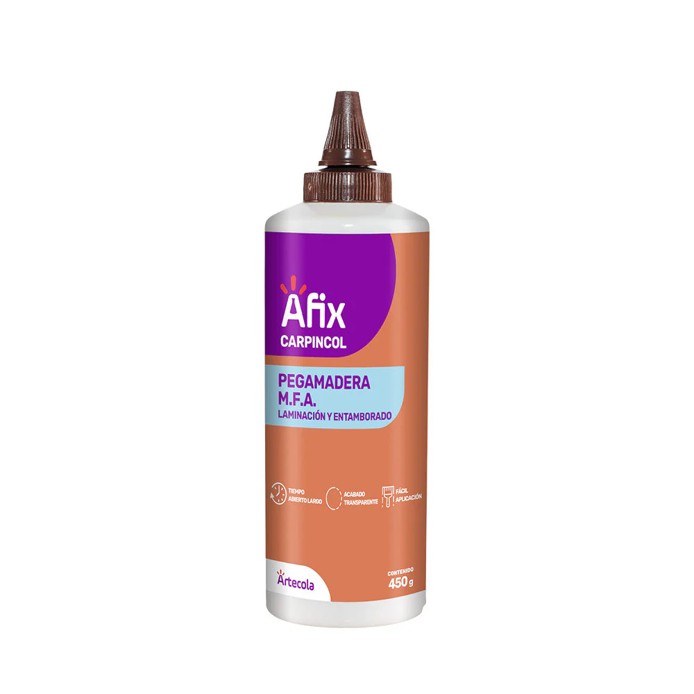 Pegante pegamadera mfa aplicador 450gr industria de carpintería en ensamblaje y laminación. Presenta buena adherencia sobre varios tipos de madera. También se puede utilizar en trabajos manuales especialmente en artesanías