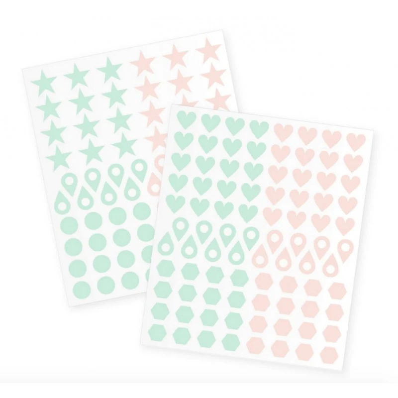 El paquete incluye: 2 plantillas con 80 stickers cada una