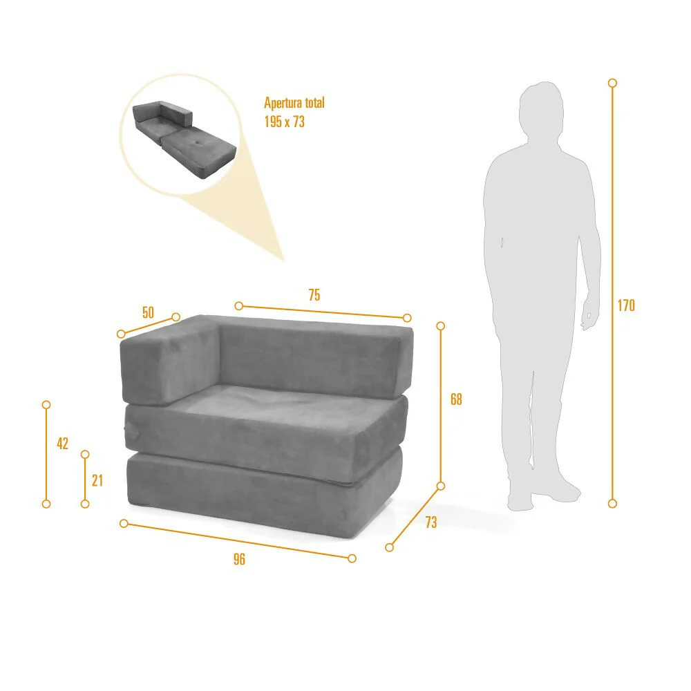 ✅ Medidas abierto: 73 cm ancho x 195 cm largo x 21 cm alto | Medidas cerrado: 96 cm ancho x 73 cm largo x 68 cm alto.