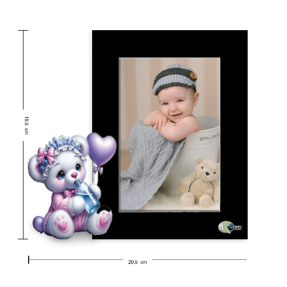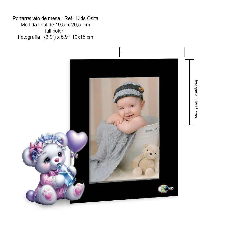 Portarretrato de mesa Kids-AN13- mdf corte laser- Full Color (19,5cm x 20,5cm) fotografía tamaño postal 10 x15 cms, vidrio 2 mm ajustable con flexipuntas, tapa en mdf con pata escualizable Color Negro con animal en full color