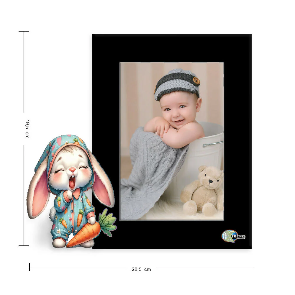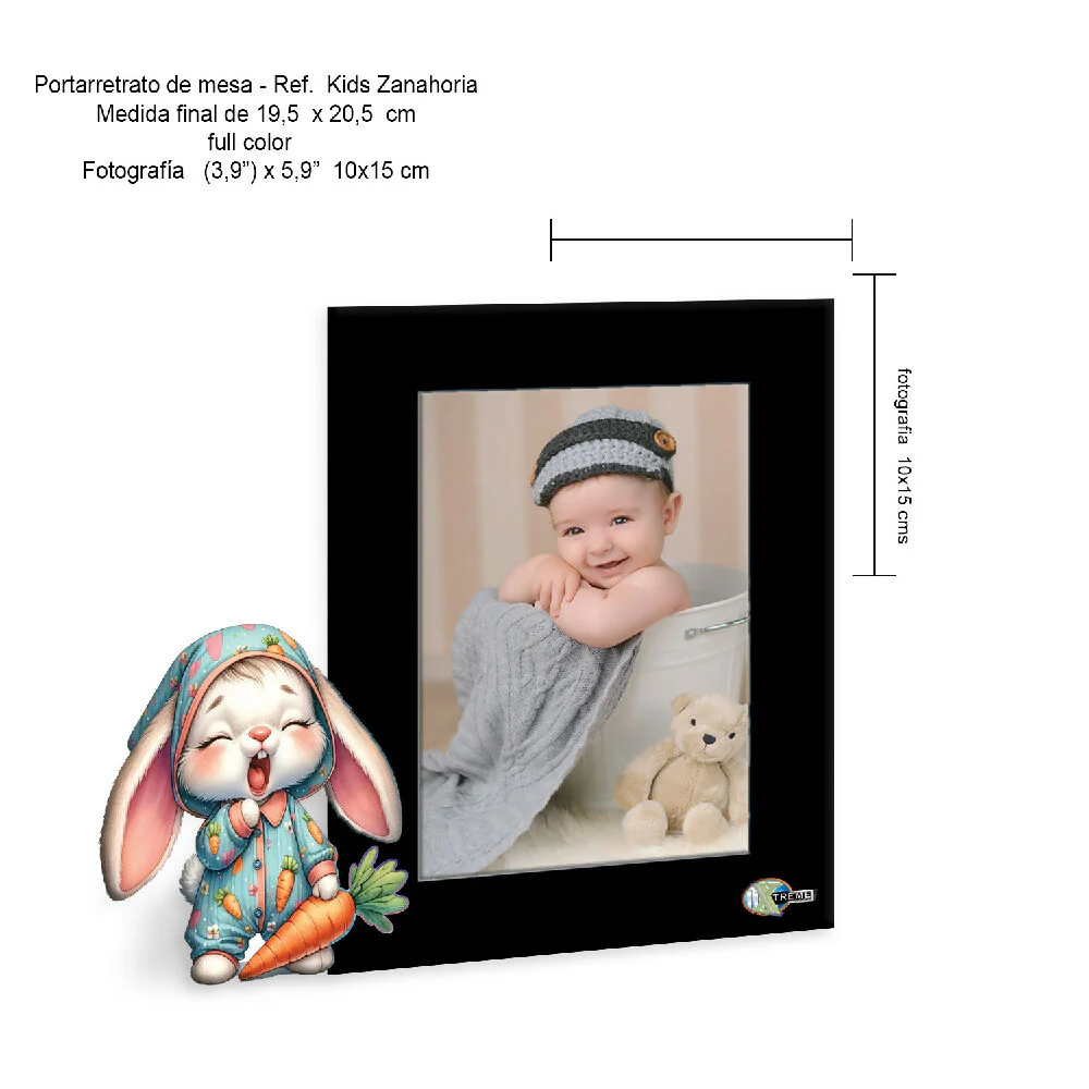 Portarretrato de mesa Kids-AN20 – mdf corte laser- Full Color (20,5cm x 19,5cm) fotografía tamaño postal 10 x15 cms, vidrio 2 mm ajustable con flexipuntas, tapa en mdf con pata escualizable Color Negro con animal en full color