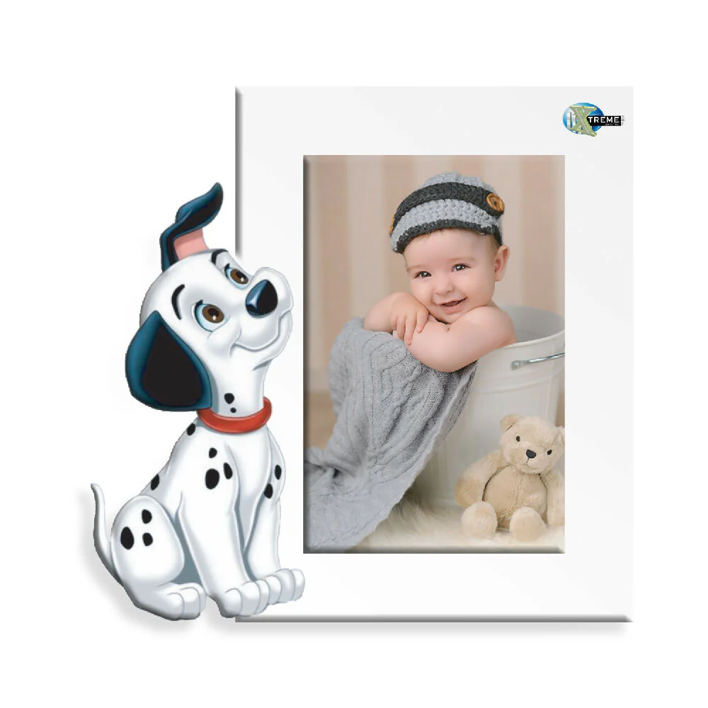 Portarretrato de mesa Kids-AN5 – mdf corte laser- Full Color (19,5cm x 20cm) fotografía tamaño postal 10 x15 cms, vidrio 2 mm ajustable con flexipuntas, tapa en mdf con pata escualizable Color blanco con animal en full color