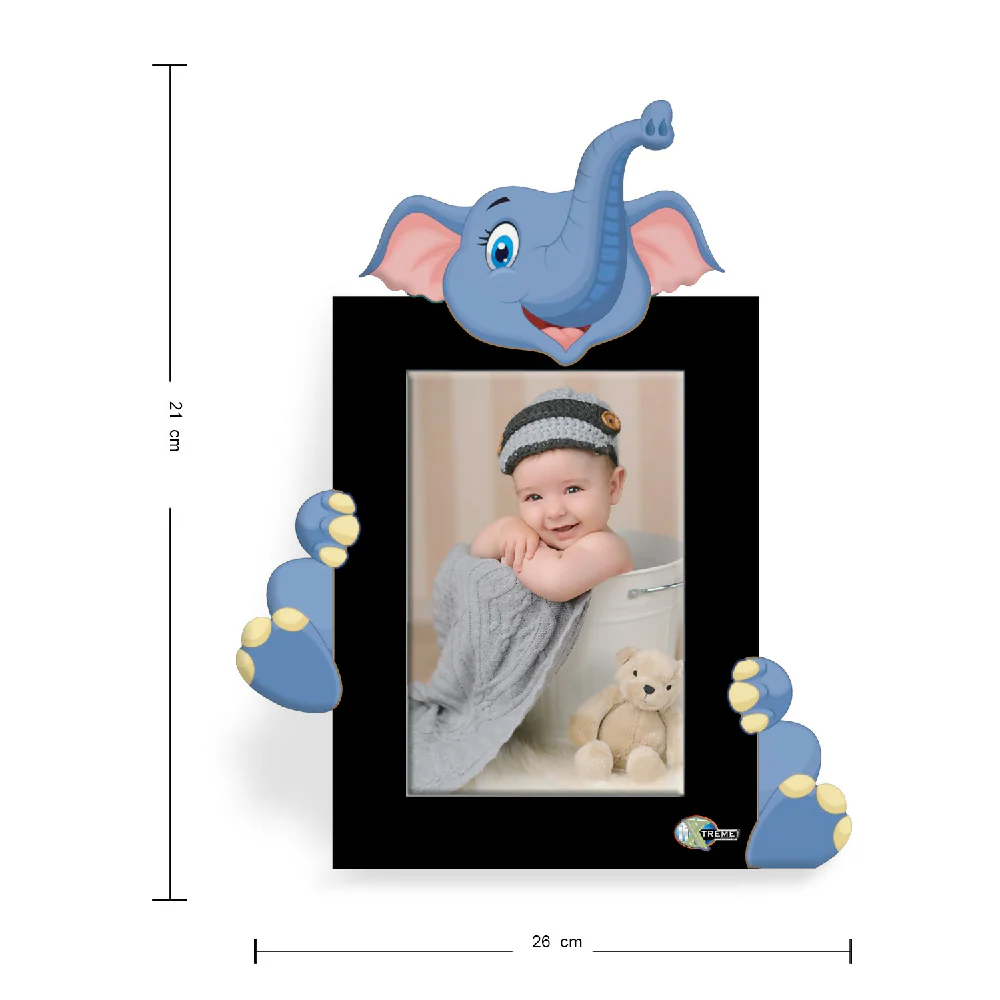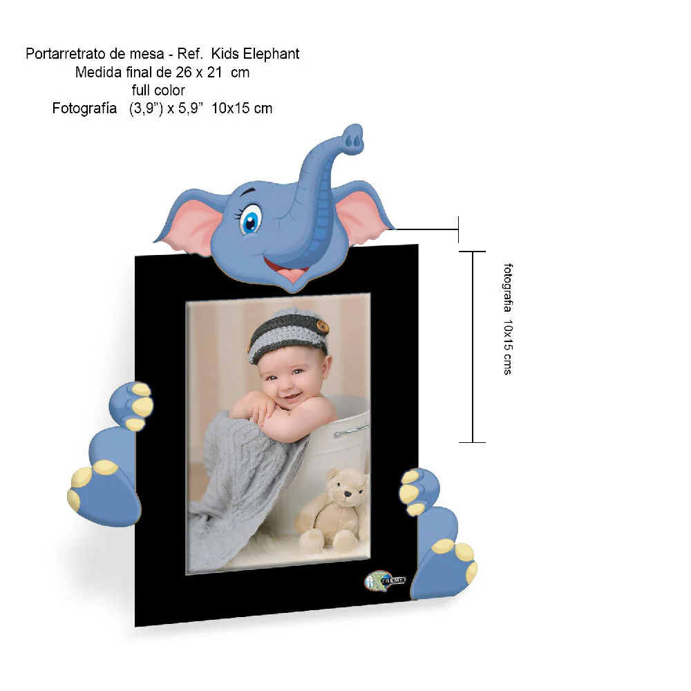 Portarretrato de mesa Kids-AN8 – mdf corte laser- Full Color (21cm x 26cm) fotografía tamaño postal 10 x15 cms, vidrio 2 mm ajustable con flexipuntas, tapa en mdf con pata escualizable Color Negro con animal en full color