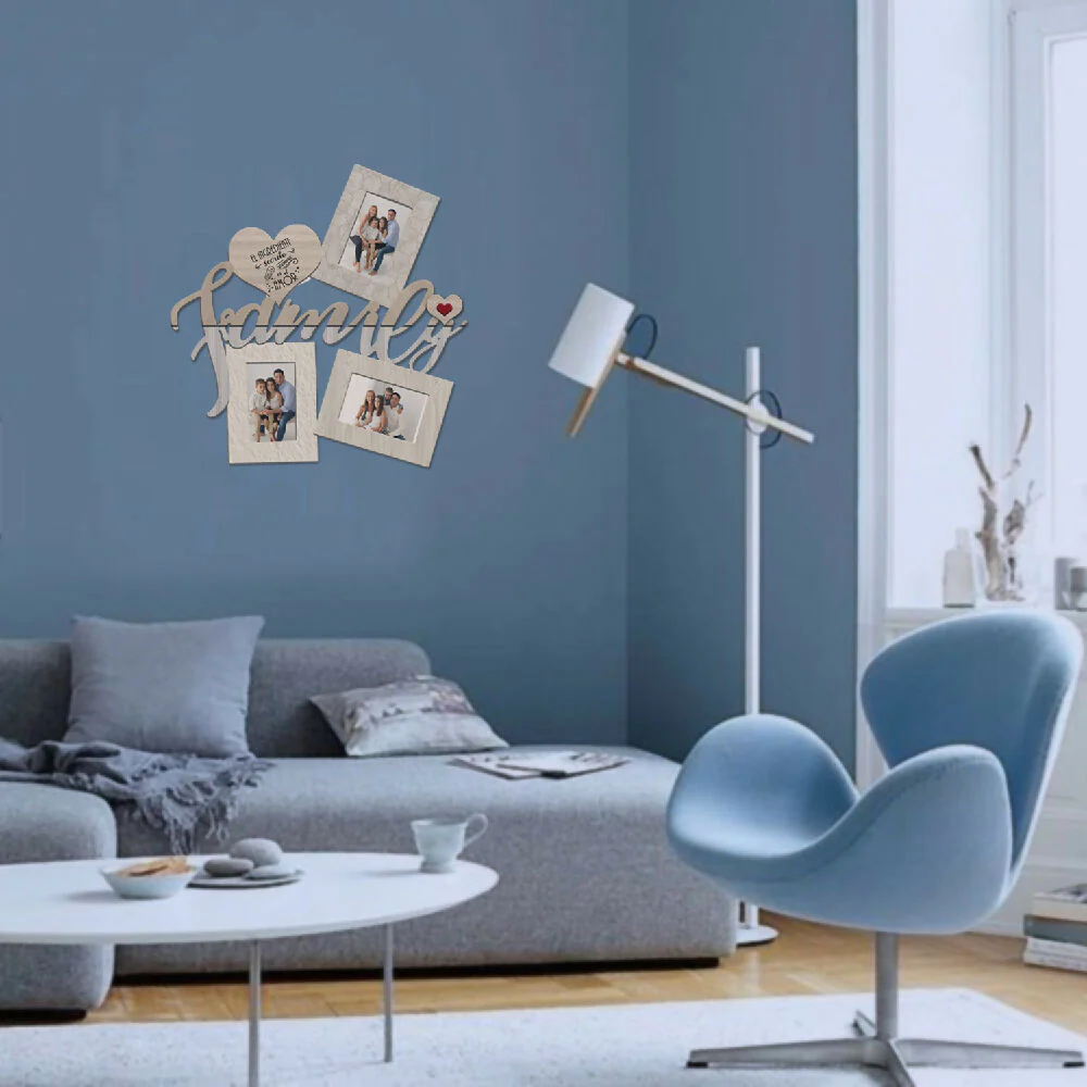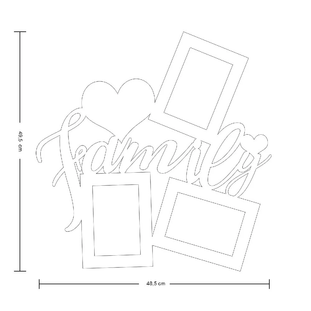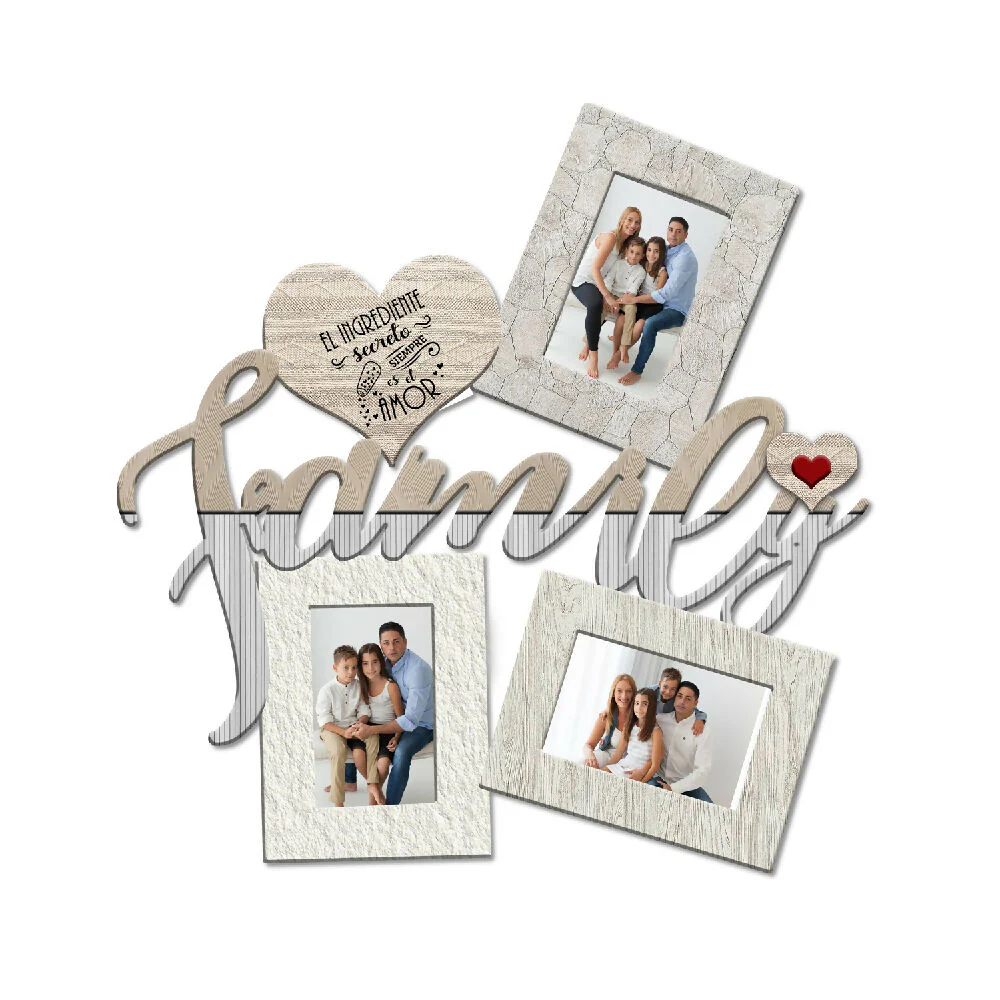 Cuadro decorativo de pared Triptico Family – F2 – mdf corte laser- Full Color (48,5cm x 49,5cm) fotografía (3) postal 10 x15 cms, vidrio 2 mm ajustable con flexipuntas, tapa en mdf; Color Crema y Gris Claro