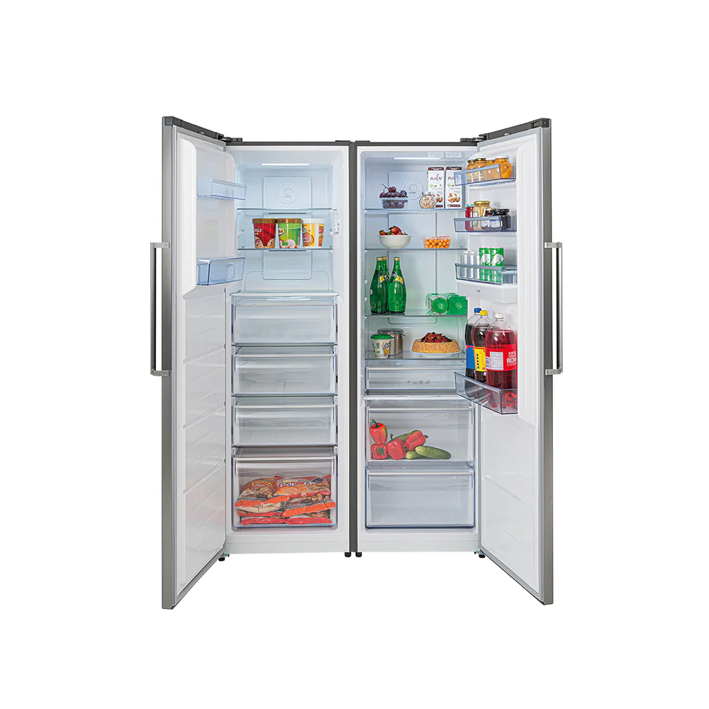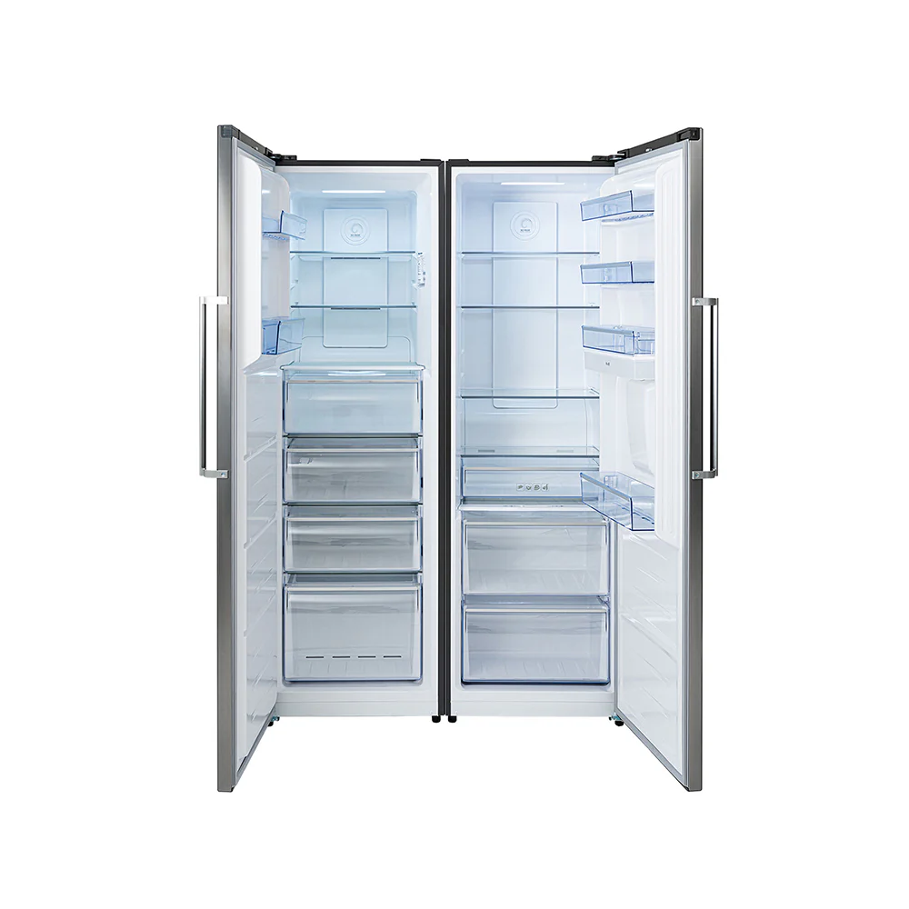 Este refrigerador cuenta con dos puertas reversibles, lo que permite adaptarlo a cualquier espacio de tu cocina. El control de temperatura tanto en la nevera como en el congelador te brinda la flexibilidad necesaria para conservar tus productos de manera óptima. Además, su diseño incluye un dispensador de agua y hielo, facilitando el acceso a bebidas refrescantes en cualquier momento. Este combo incluye: (1) Refrigerador sin escarcha (No Frost) de 387 litros brutos y (1) Congelador sin escarcha (No Frost) de 274 litros. Cada producto cuenta con: Control electrónico multifunción, sistema de enfriamiento multiflujo y puerta reversible para elegir orientación de apertura. Acabado en acero inoxidable.