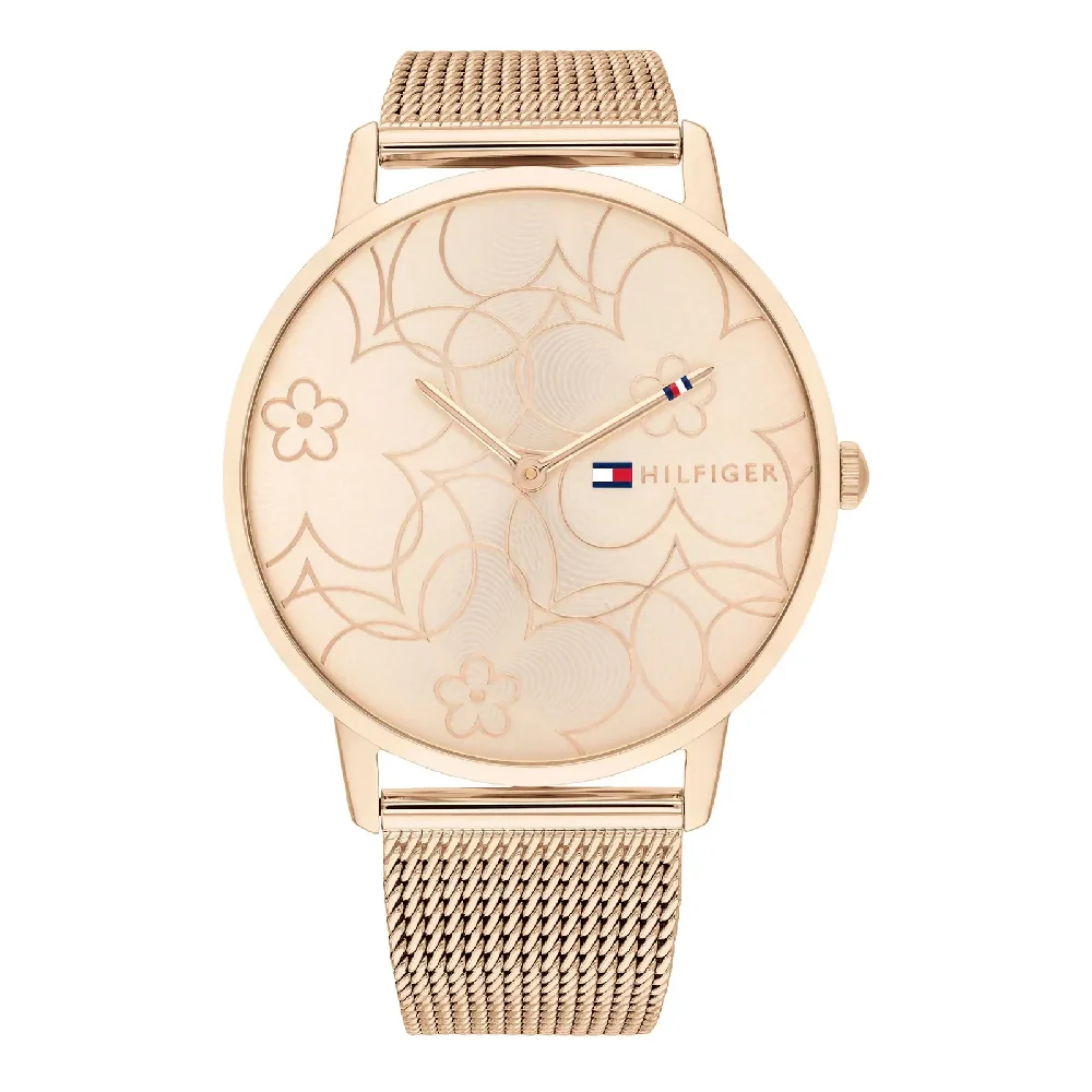 Reloj para mujer Tommy Hilfiger Alex Carnation Gold Slim modelo 1782369, elegante y con estilo floral para complementar tu look casual.