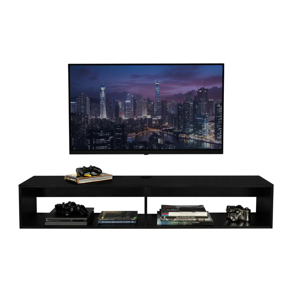 Repisa Flotante, con espacio para ubicar objetos decorativos, equipos de audio video, entre otros. Máximo 65 pulgadas