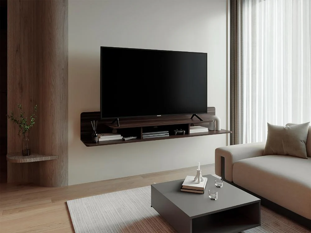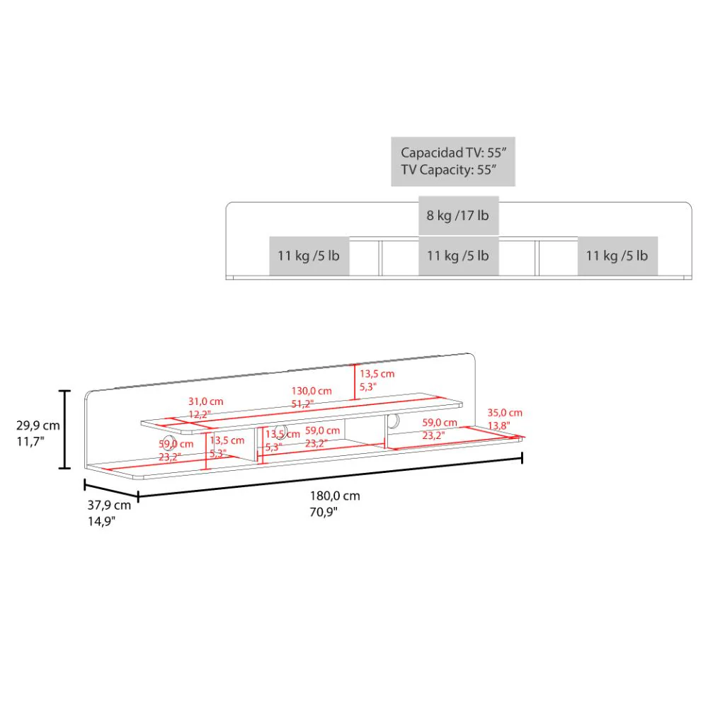 Repisa para TV con espacio para ubicar equipos de de audio y video, con espacionpara tv en mesa de hasta 55″ y para tv en pared de hasta 75″
