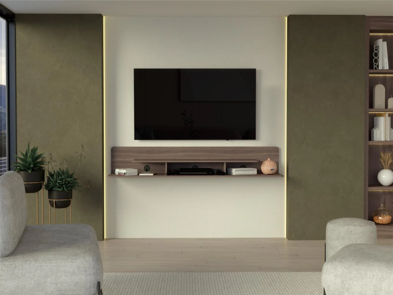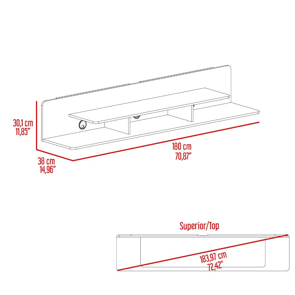Repisa para TV con espacio para ubicar equipos de de audio y video, con espacionpara tv en mesa de hasta 55″ y para tv en pared de hasta 75″