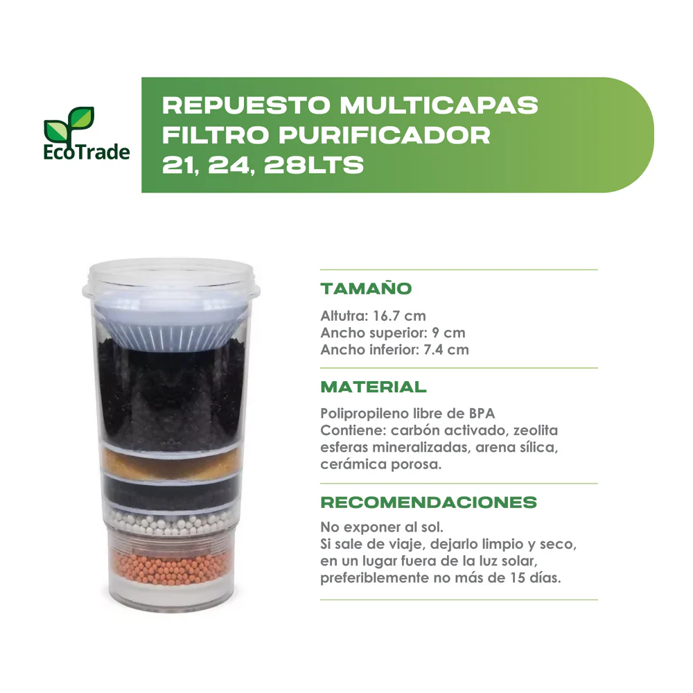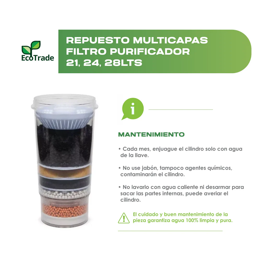 | Cilindro Multicapas Para Filtro Purificador De Agua de 21, 24 y 28 Litros – Marca: Ecotrade Filters.