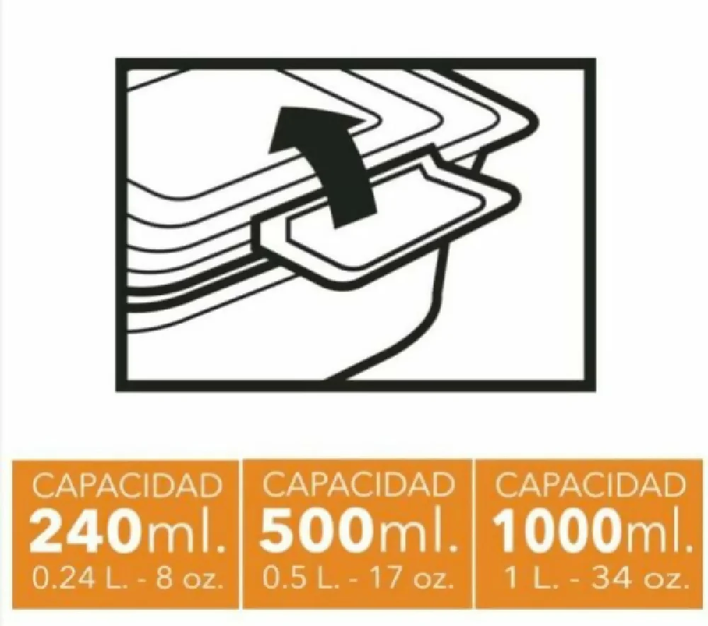 • 3 tamaños diferentes: 240 ml, 500 ml y 1000 ml