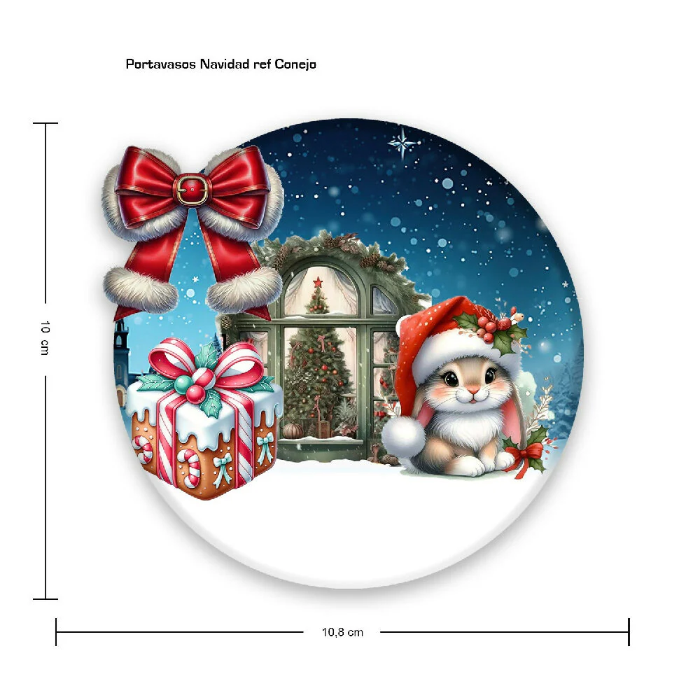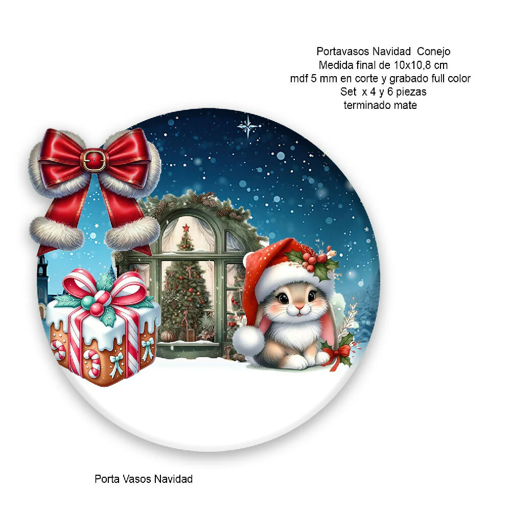 Portavasos-NA-Conejo – mdf corte y grabado laser, impreso Full Color terminado mate (10 x 10,8 cm), Set x 4 Unds; Color Rojo y Azul