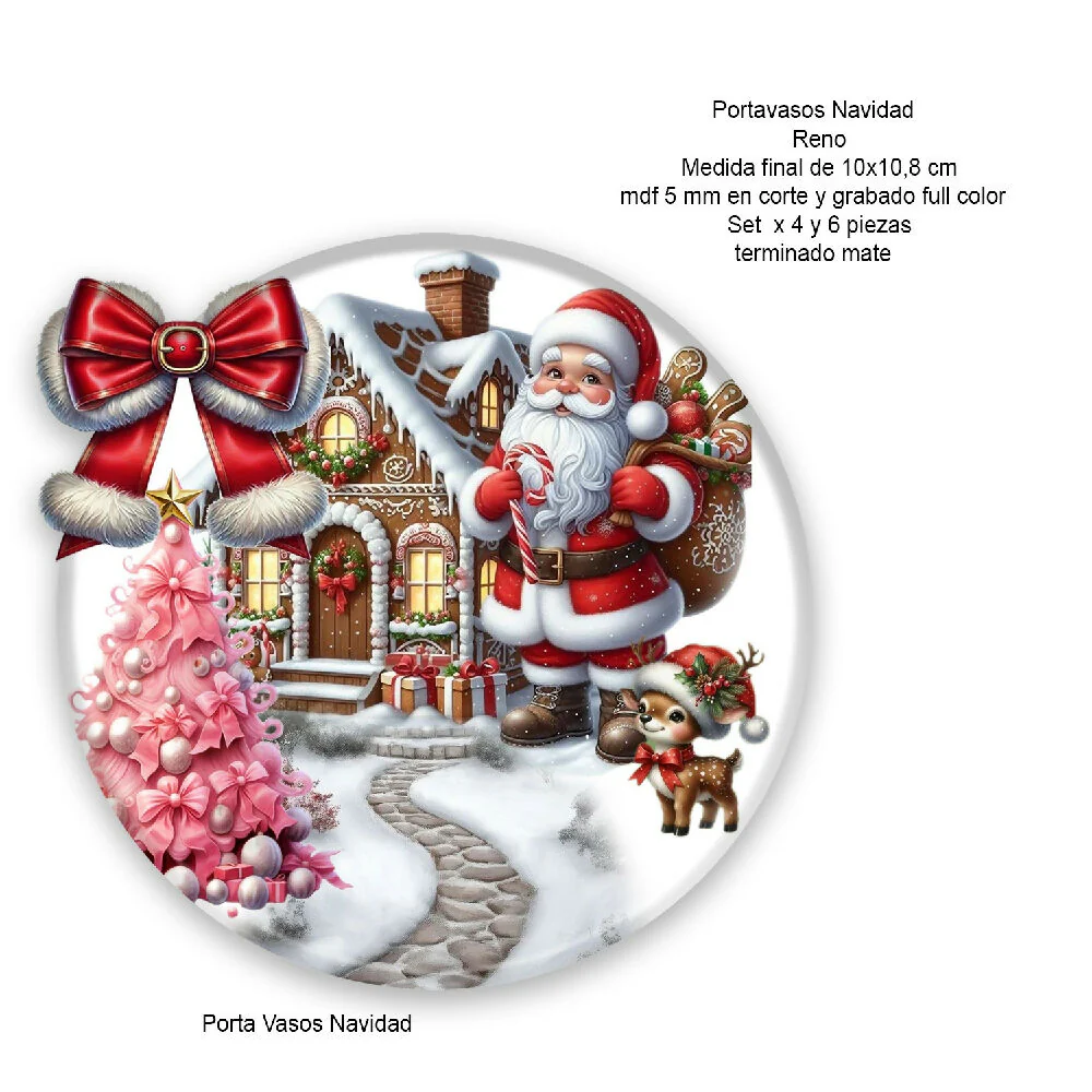 Portavasos-NA-Reno – mdf corte y grabado laser, impreso Full Color terminado mate (10 x 10,8 cm), Set x 4 Unds; Color Blanco y Rojo