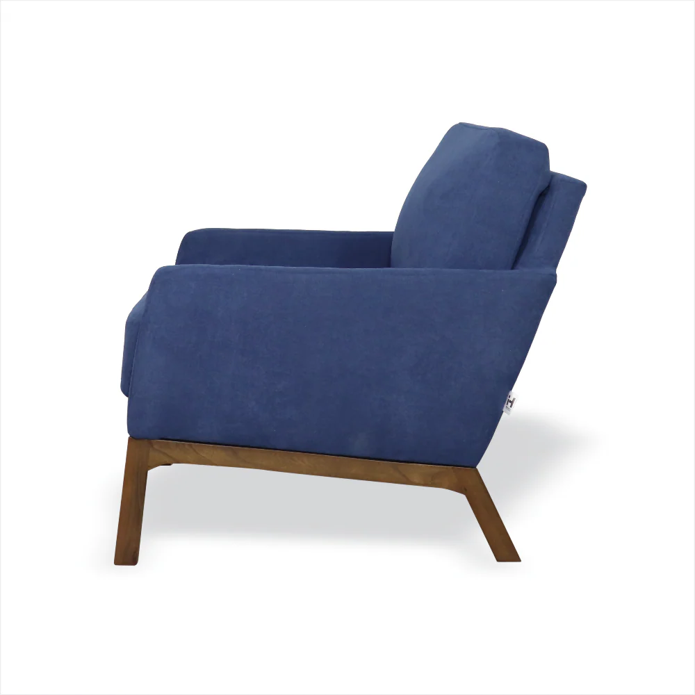La Silla Agatha elaborada en madera de pino seca e inmunizada, tapizada con espuma de alta densidad y tela paño. Sus patas también en madera de Achapo pintadas con laca catalizada, en color moka.