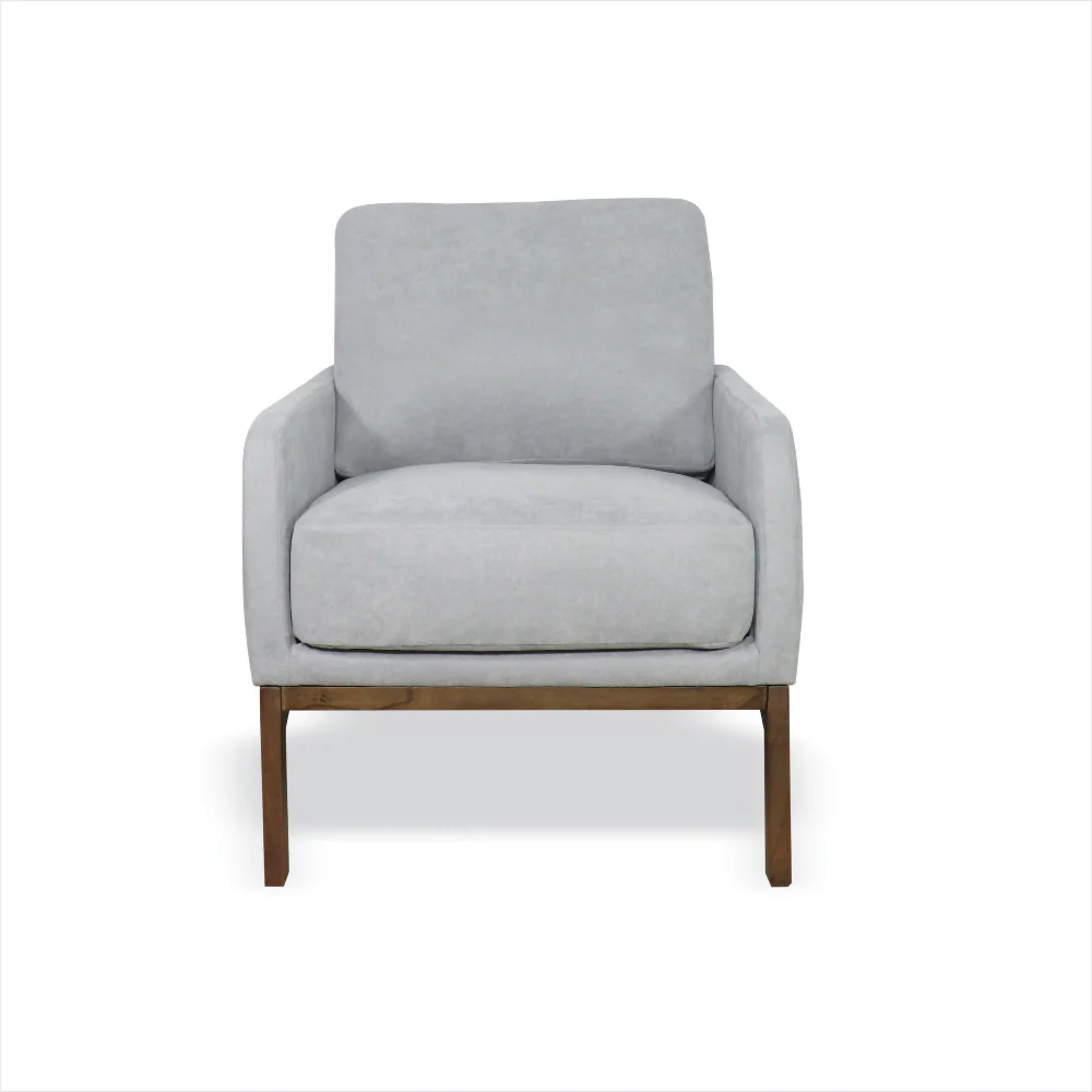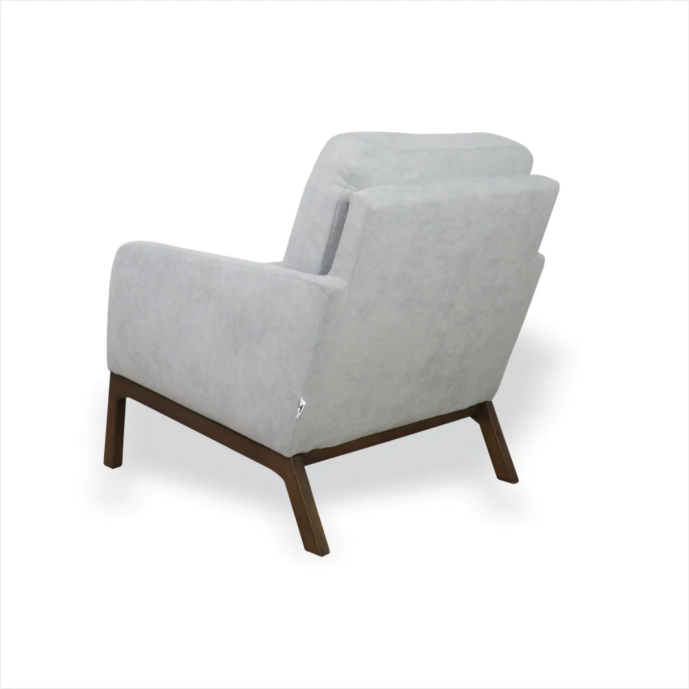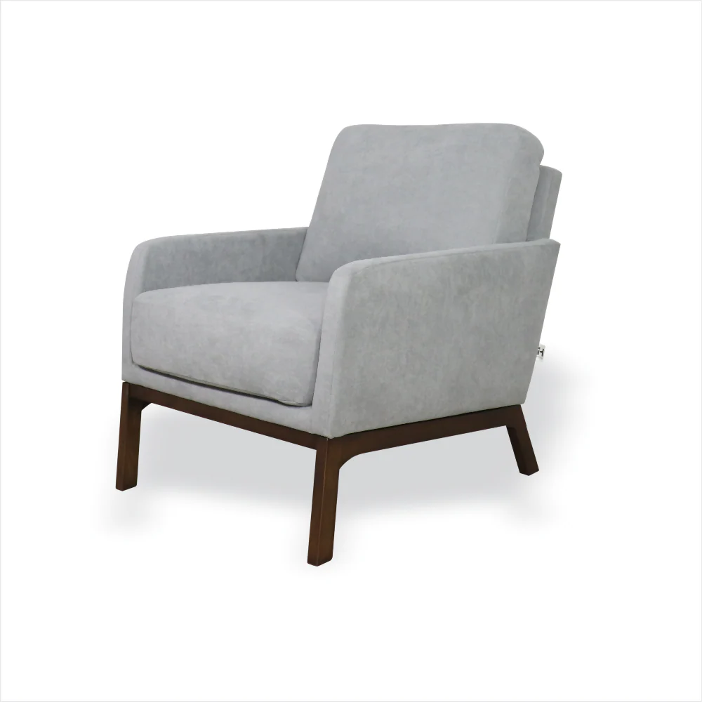 La Silla Agatha elaborada en madera de pino seca e inmunizada, tapizada con espuma de alta densidad y tela paño. Sus patas también en madera de Achapo pintadas con laca catalizada, en color moka.