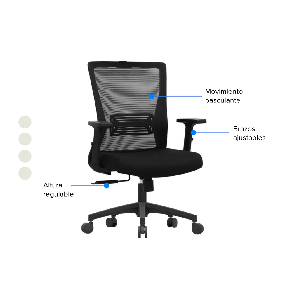 3. Brazos: ajustables en altura en polipropileno color negro. Disponible opción de brazos 3D.