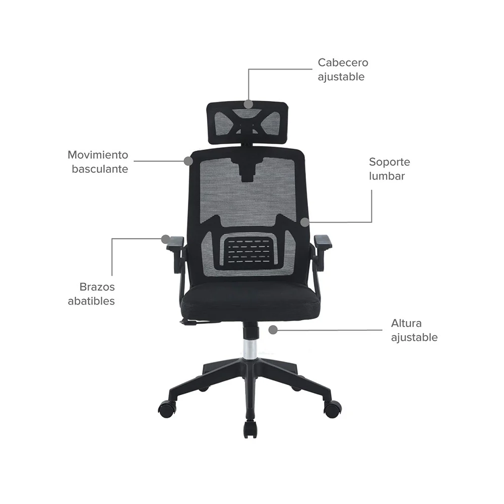 3. Brazos: abatibles elaborados en polipropileno color negro.