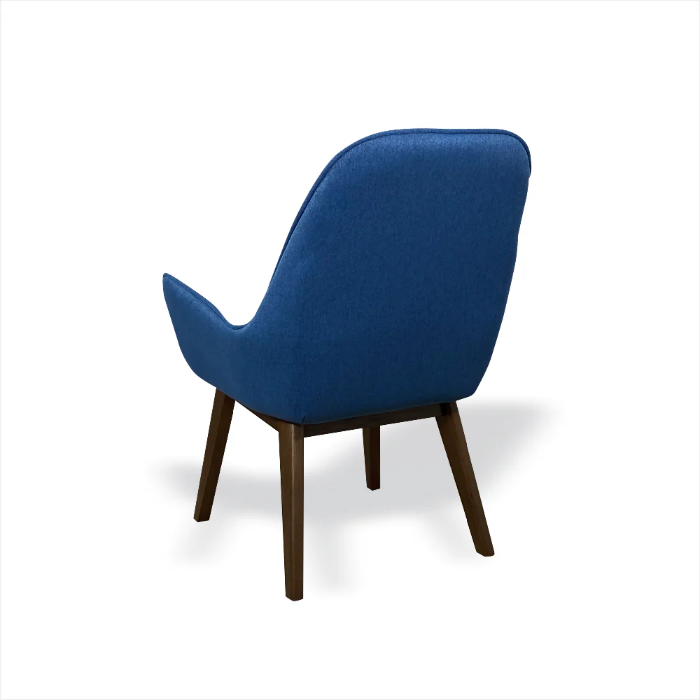 La Silla Koraki elaborado en madera de pino seca e inmunizada, tapizada con espuma de alta densidad y tela paño. Sus patas también en madera de Achapo pintadas con laca catalizada, en color moka.