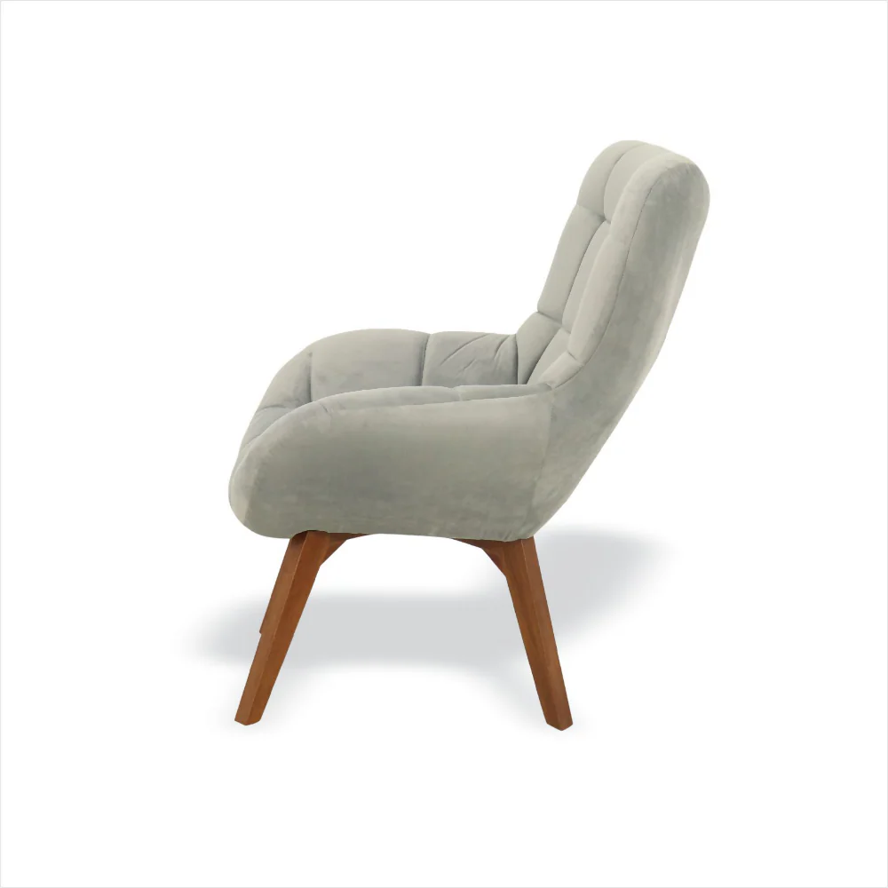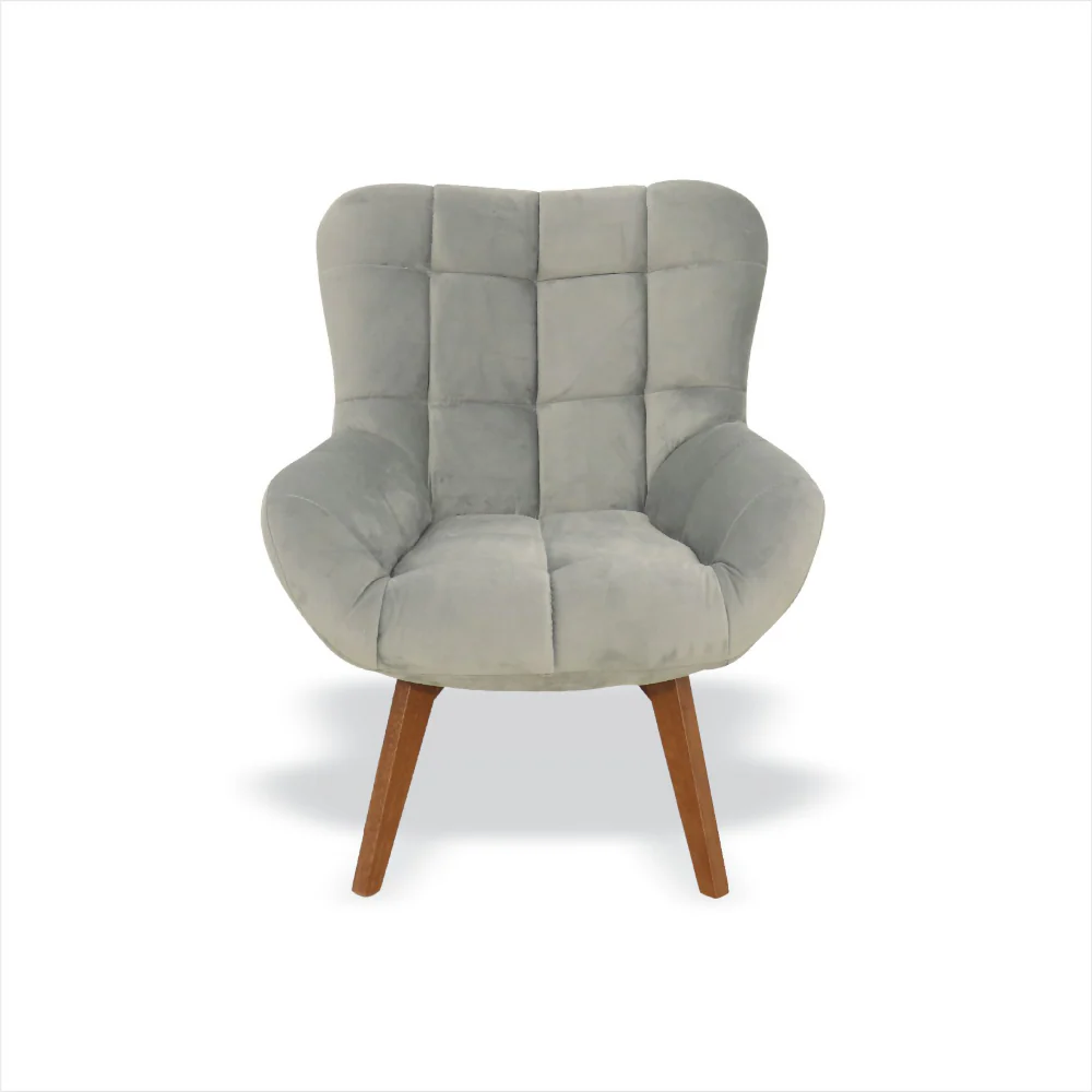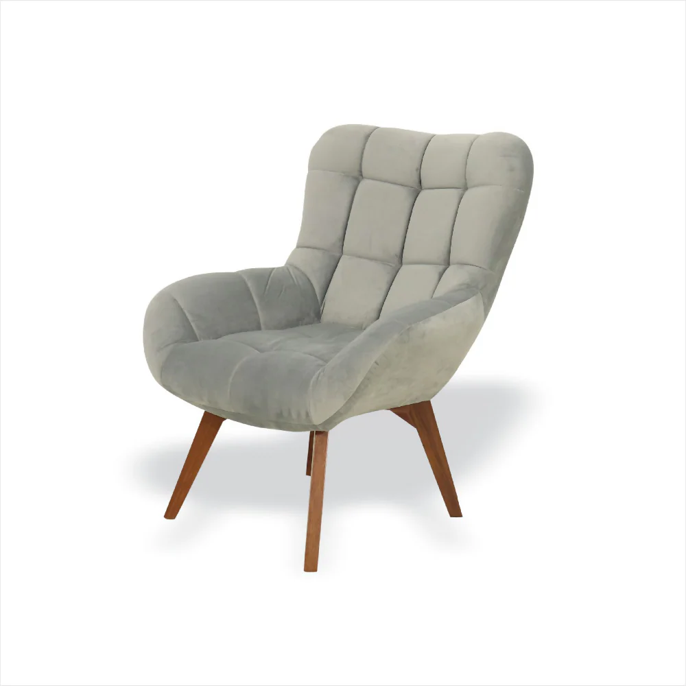 La Silla Niu elaborada en madera de pino seca e inmunizada, tapizada con espuma de alta densidad y tela paño. Sus patas también en madera de Achapo pintadas con laca catalizada, en color moka.