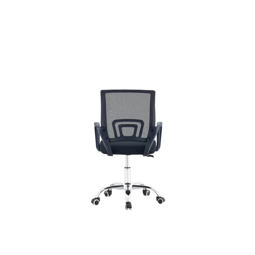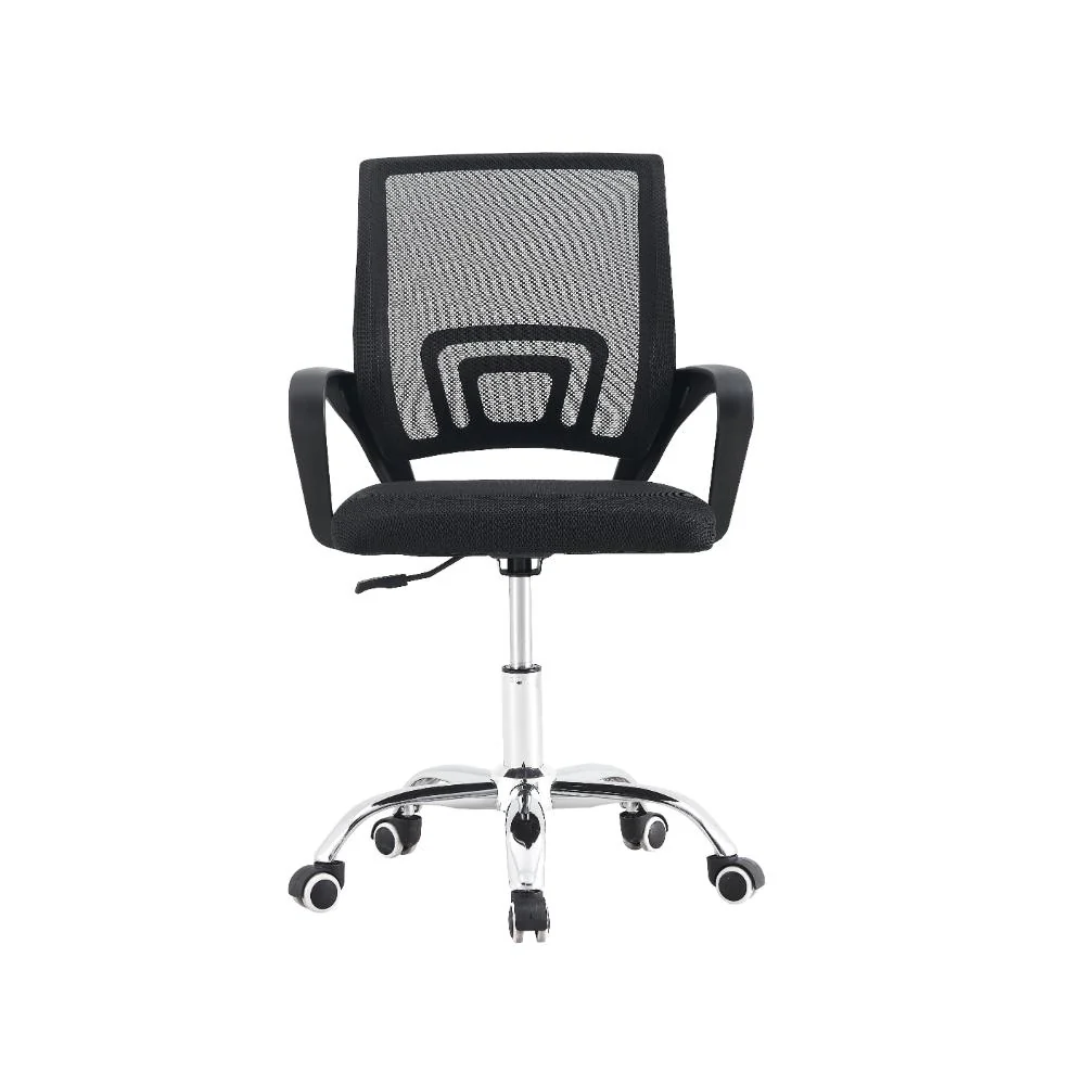 Elaborado con espalda en malla, brazos de plástico, asiento de espuma y base de metal cromado de excelente calidad, en color Negro.