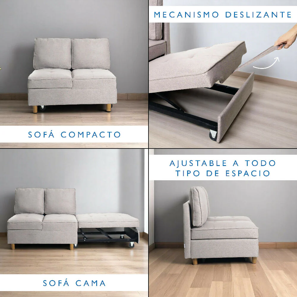 Beneficios Destacados: Puede utilizarse como sofá o como sofá cama, además, su respaldo lateral es ajustable, permitiendo inclinarlo en diferentes ángulos para mayor comodidad.