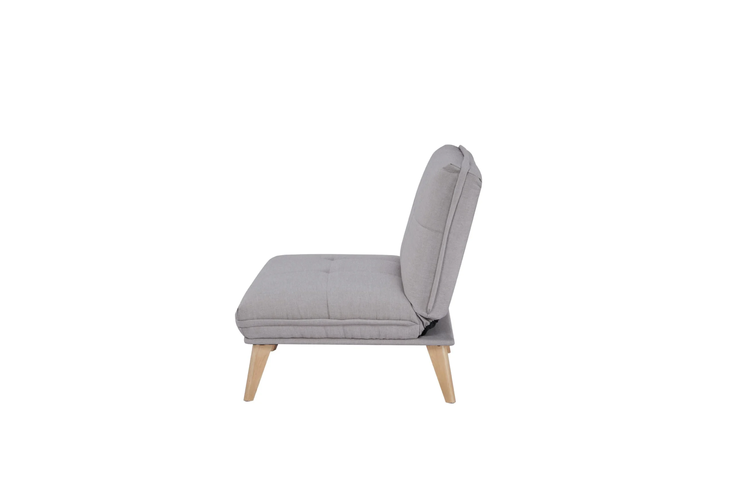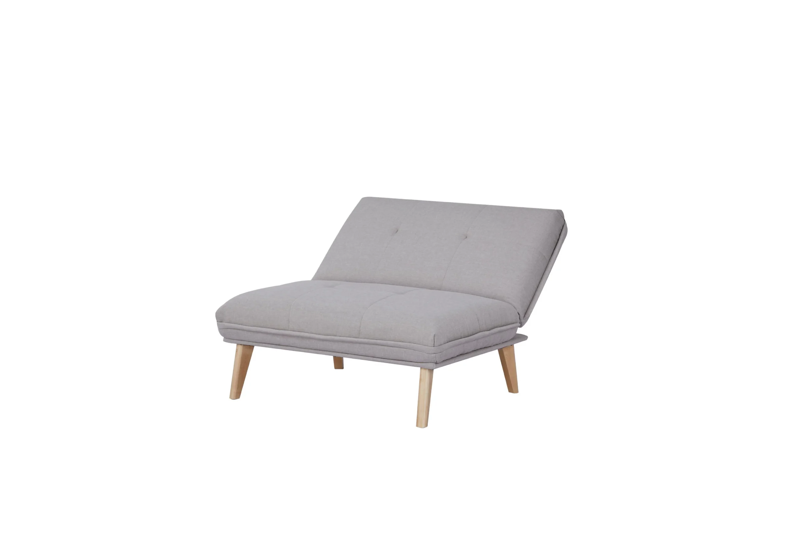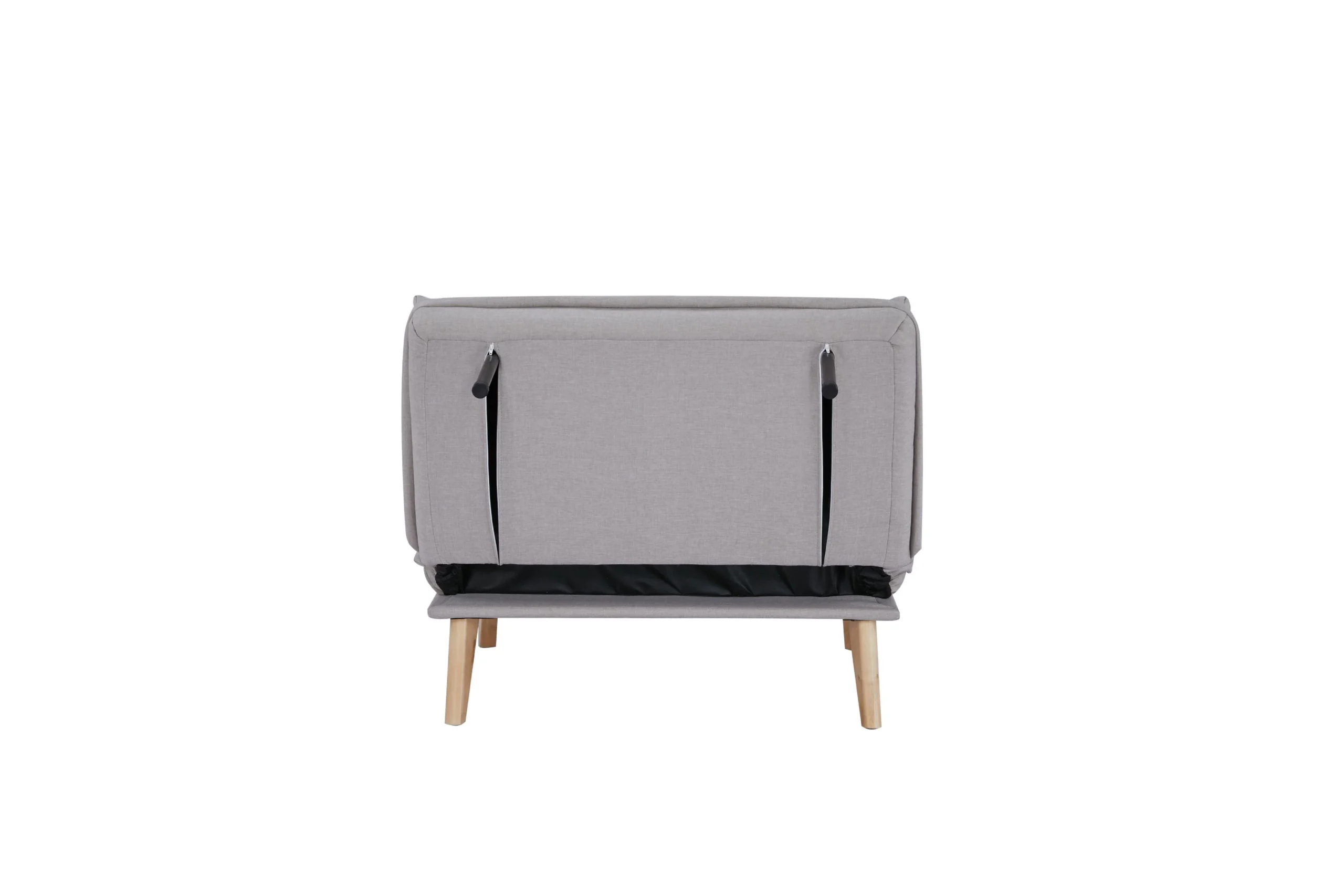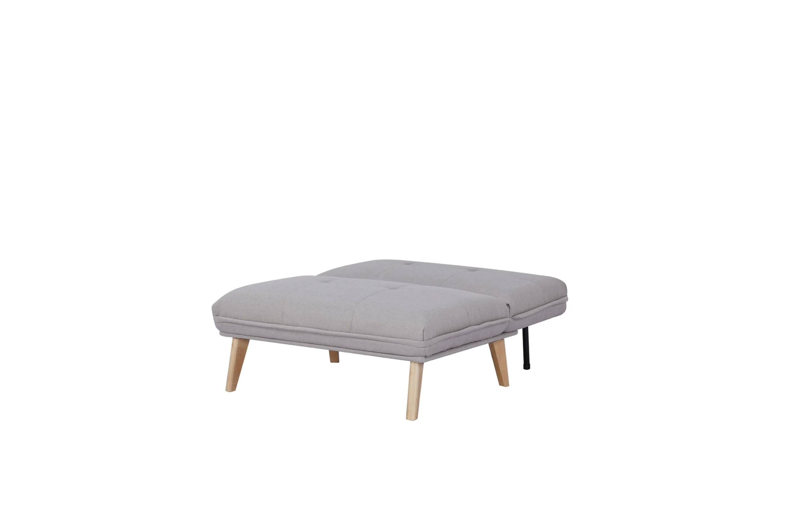 Sofá Cama, con estructura de madera y espuma, 3cm 50 D espuma ecológica + 2 cm 28 D buena espuma, tela 100% poliéster, patas de madera, y el mecanismo es tipo bisagra. Excelente calidad, en color Gris claro.