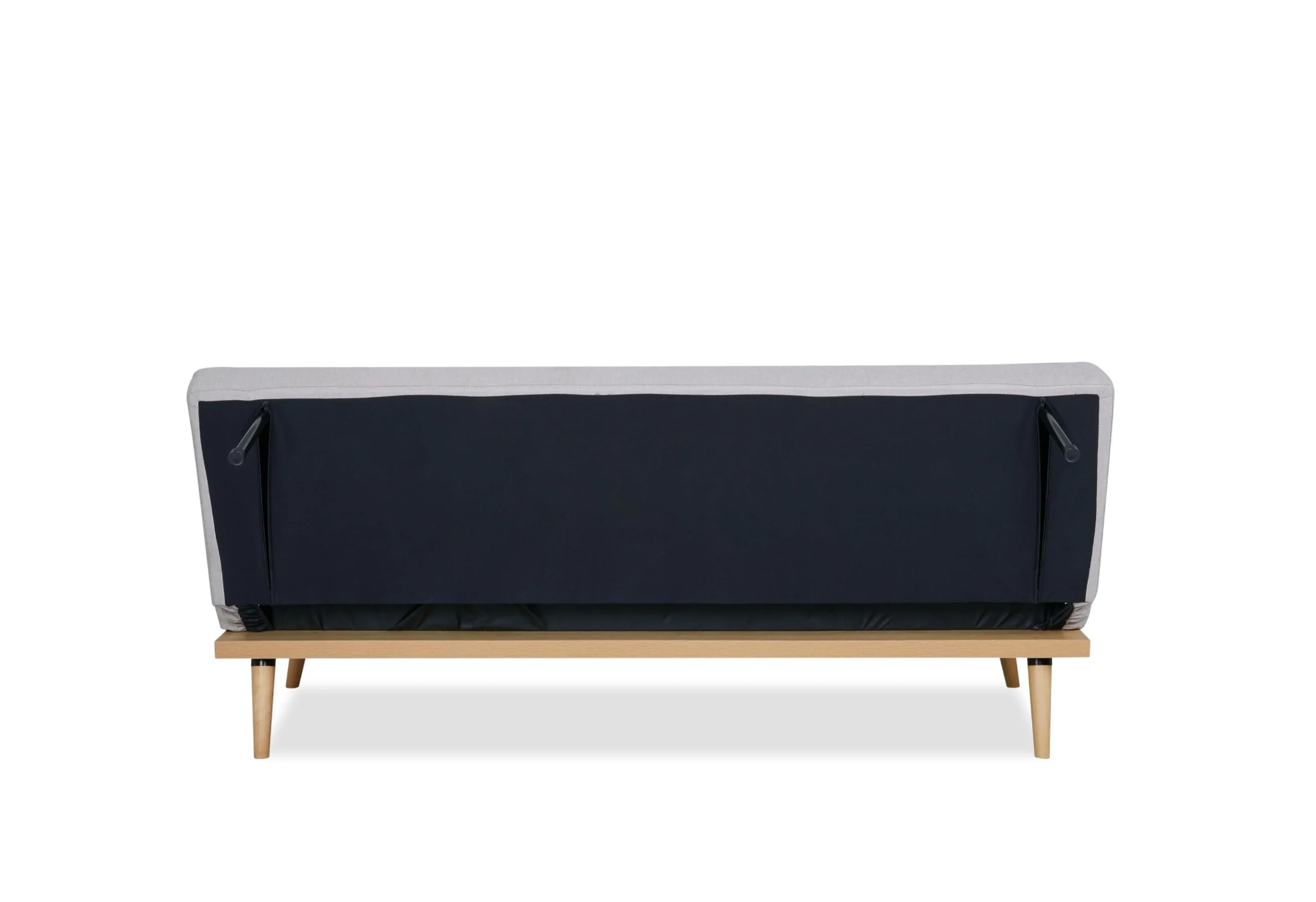 Sofá Cama Kingston, con estructura de madera y espuma, 3cm 50 D espuma ecológica + 2 cm 28 D buena espuma, tela 100% poliéster, patas de madera y mecanismo de bisagra.