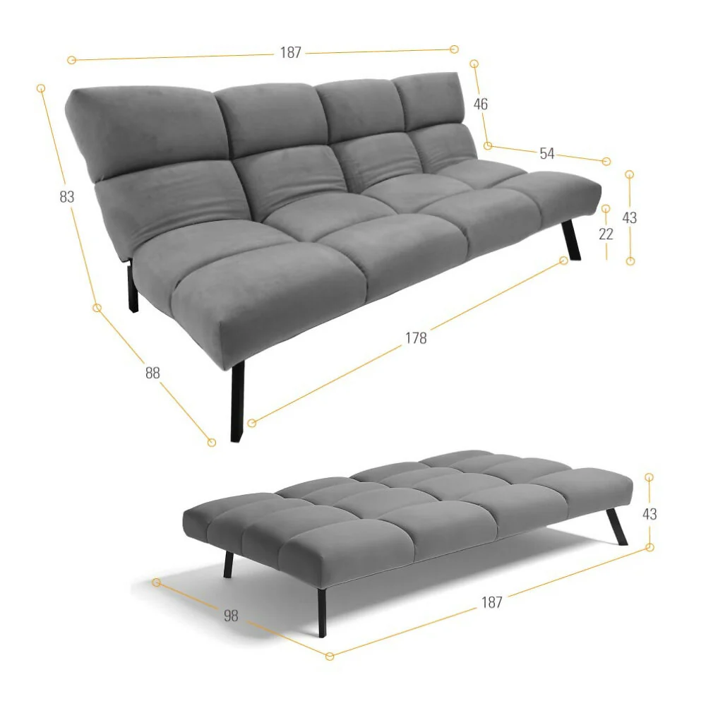 ✅ Uso multifuncional: sofá 3 puestos, cama individual.