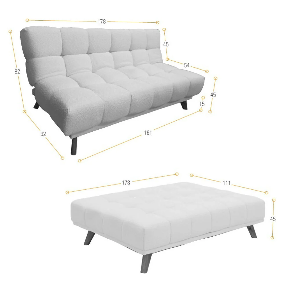✅ Medidas modo cama: 111 cm ancho x 178 cm largo x 45 cm alto.