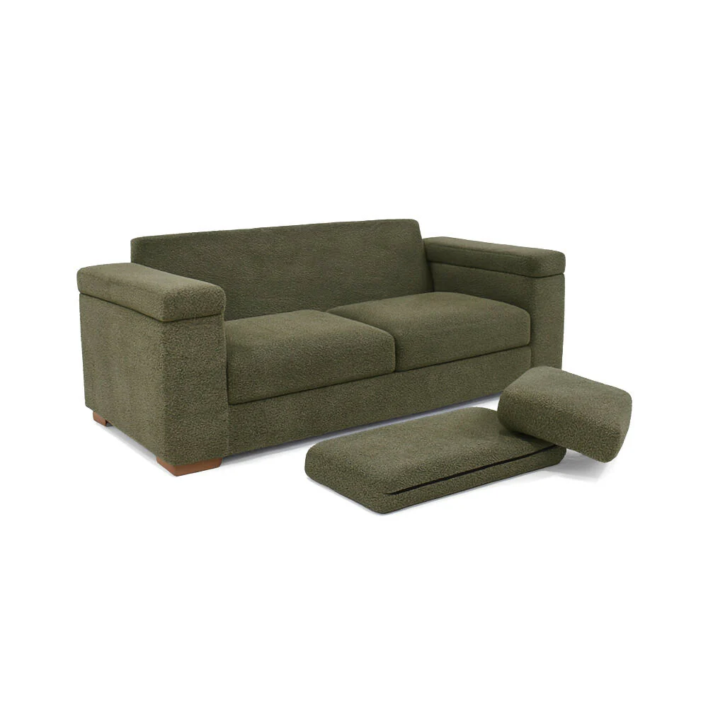 Sofá de estilo moderno y exclusivo, elaborado en una fuerte estructura de madera pino y relleno con espuma de alta densidad. Tapizado en tela poliéster de excelente calidad y cuenta con patas en madera pino.