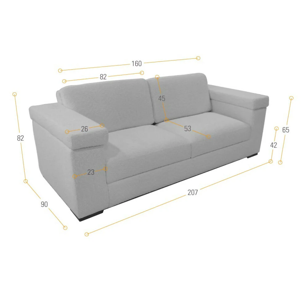 Dimensiones: 207 cm ancho x 90 cm largo x 82 cm alto x 42 cm altura del asiento.