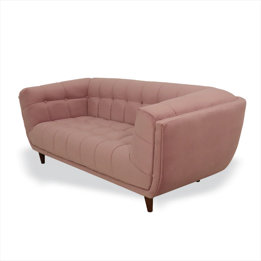 Sofá Niu elaborado en madera de pino seca e inmunizada, tapizado con espuma de alta densidad y tela paño. Este sofá combina confort y ergonomía en un diseño elegante, ideal para crear un ambiente acogedor en tu hogar. Su estructura ofrece el soporte perfecto, mientras que su estilo encantador añade calidez y personalidad a cualquier espacio. Sus patas también en madera de Achapo pintadas con laca catalizada, en color moka.