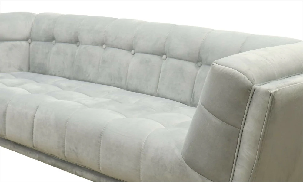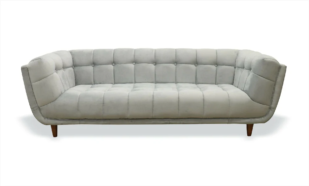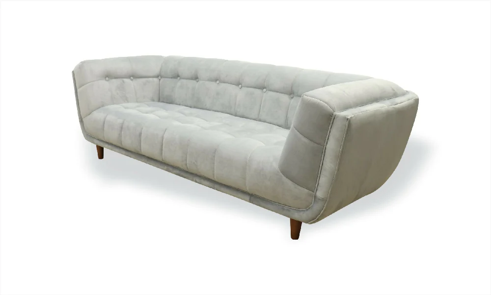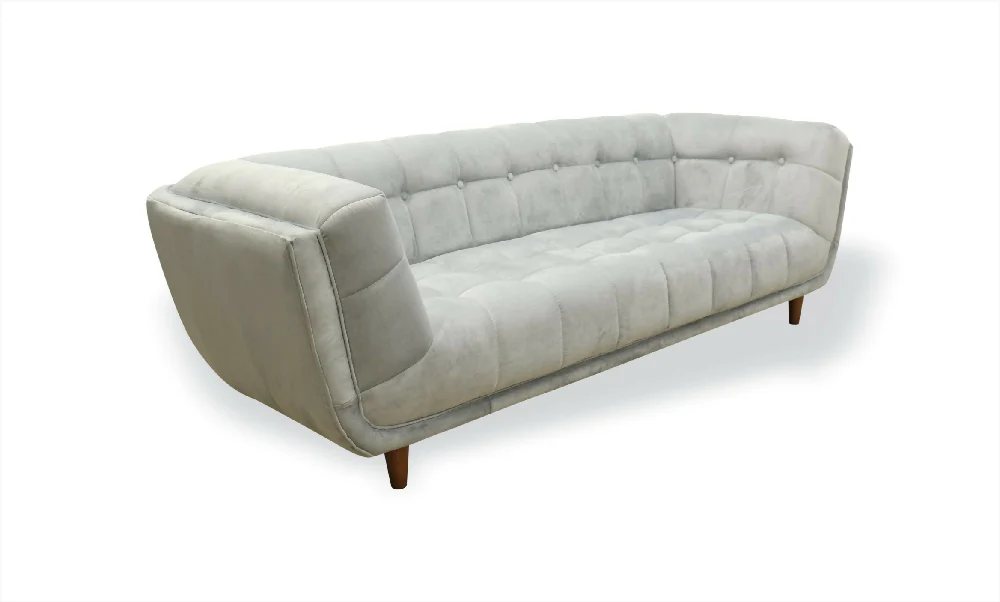 El Sofá Niu elaborado en madera de pino seca e inmunizada, tapizado con espuma de alta densidad y tela paño. Este sofá combina confort y ergonomía en un diseño elegante, ideal para crear un ambiente acogedor en tu hogar. Su estructura ofrece el soporte perfecto, mientras que su estilo encantador añade calidez y personalidad a cualquier espacio. Sus patas también en madera de Achapo pintadas con laca catalizada, en color moka.