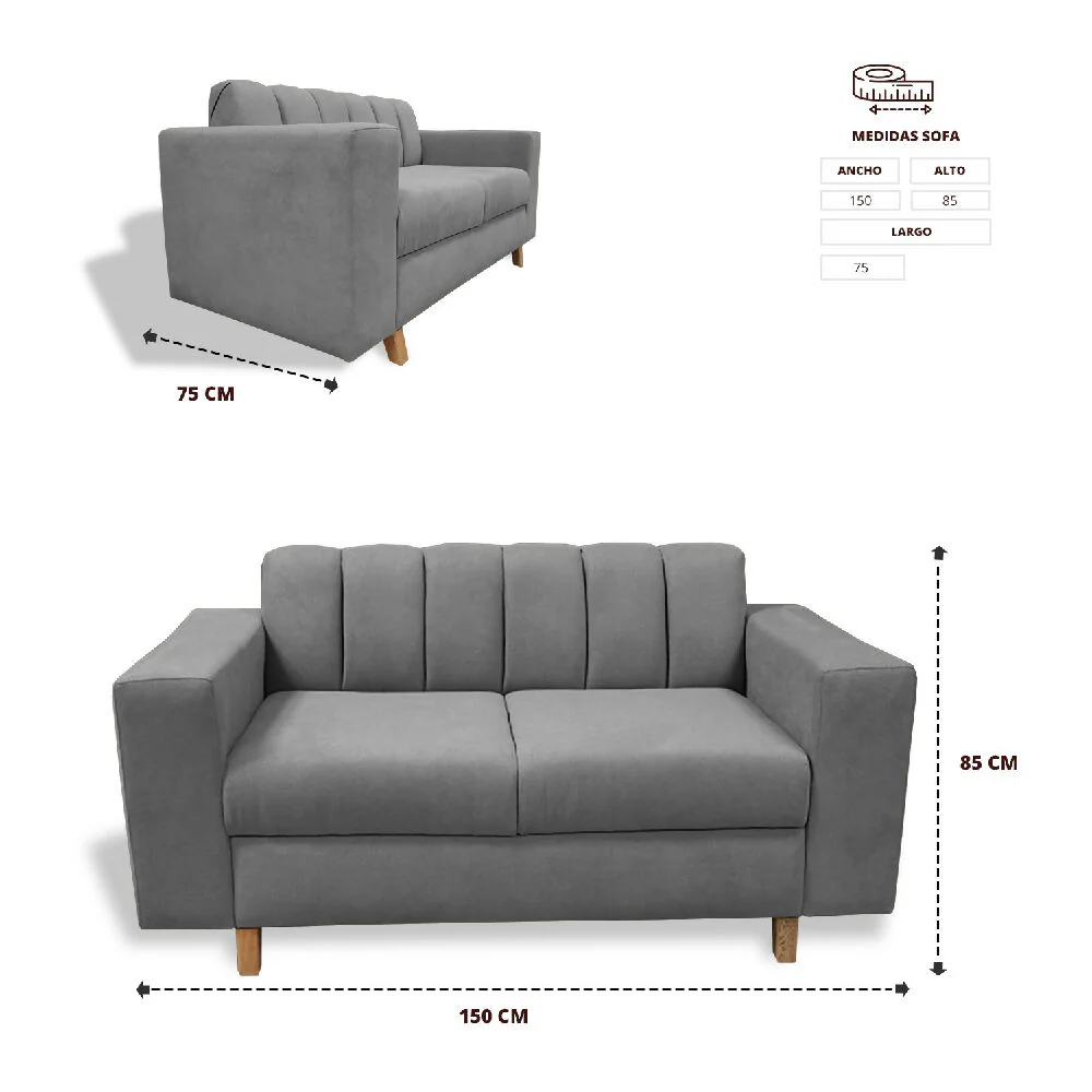 Sofá Noah 2 Puestos 150×75 cm – Gris