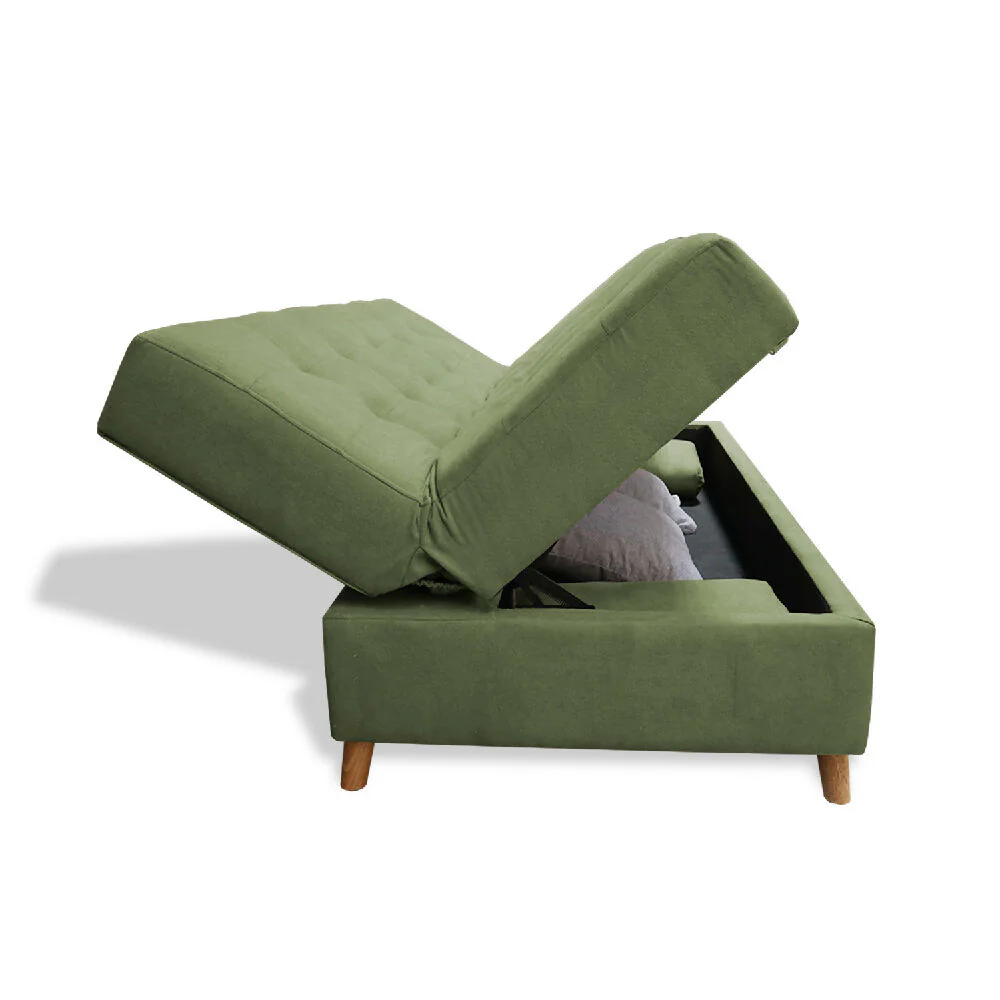 Sofacama Baul Lugano 3 Posiciones Verde + Cojines