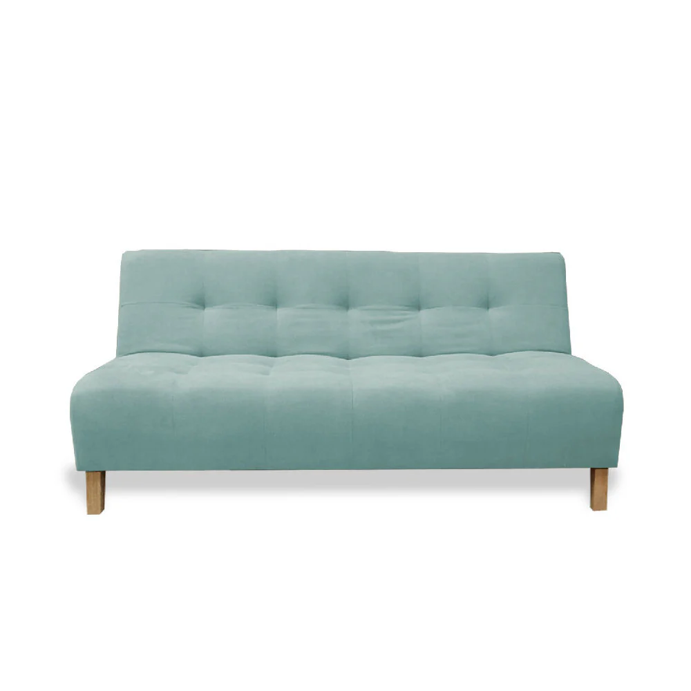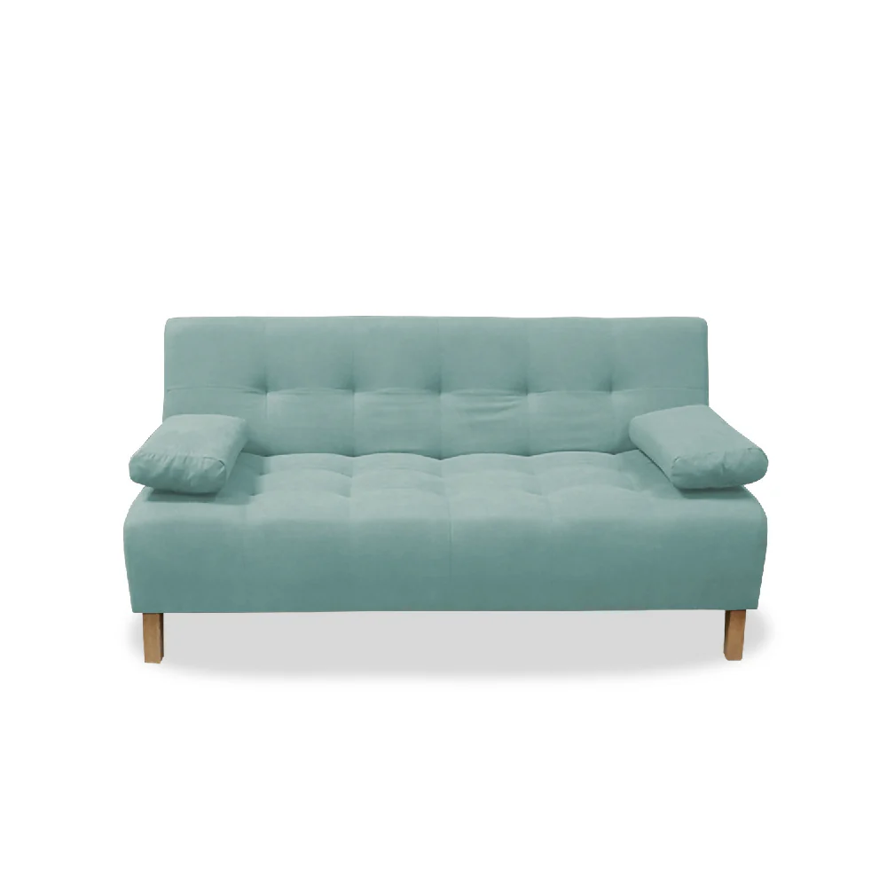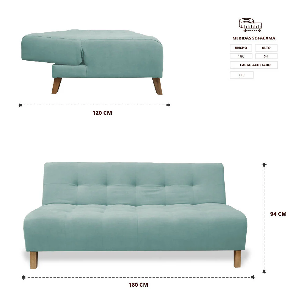 Sofácama 3 Posiciones 180×94, Tela tipo Lino color Menta, fresco al clima, suave al tacto y fácil de limpiar, desarrollado para espacios reducidos, estructura fabricada en Madera Pino inmunizada que favorece la resistencia y durabilidad, relleno de espuma de alta densidad, patas de madera resistentes con para evitar rayaduras en pisos.