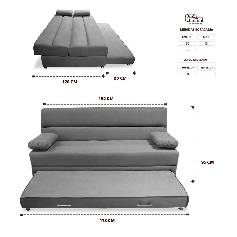 Sofacama Ferreira Nido Tarima 3 Posiciones Gris + Cojines