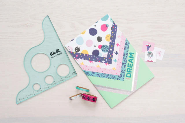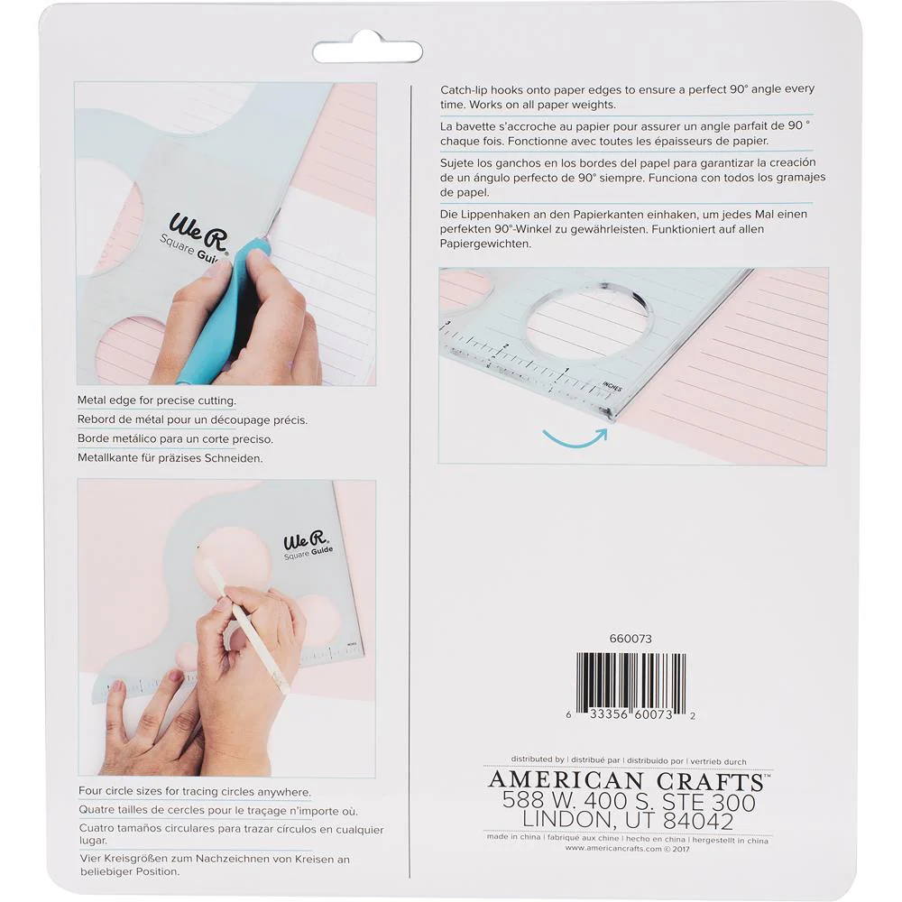Con la Guía Square Guide podrás crear esquinas y cortes perfectos de 90 grados. La regla tiene el borde en metal reforzado para poder rasgar los papeles.