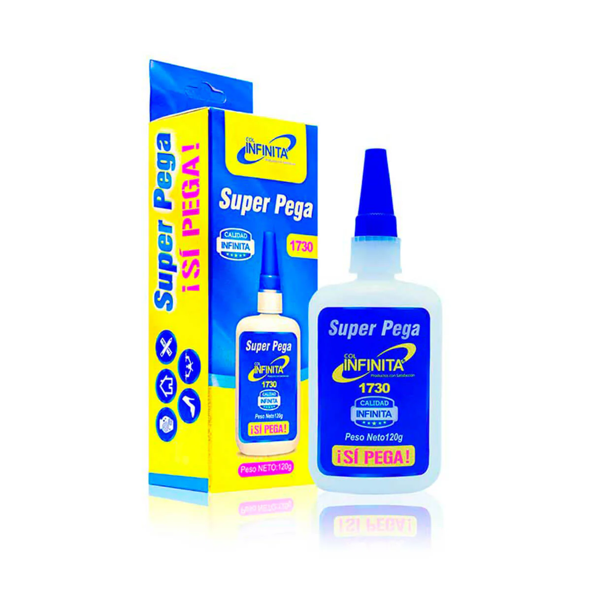 Super Pega de 120 gramos marca Infinita es el pegamento adhesivo instantáneo que te ofrece una adherencia permanente y de alta calidad en una amplia variedad de materiales.