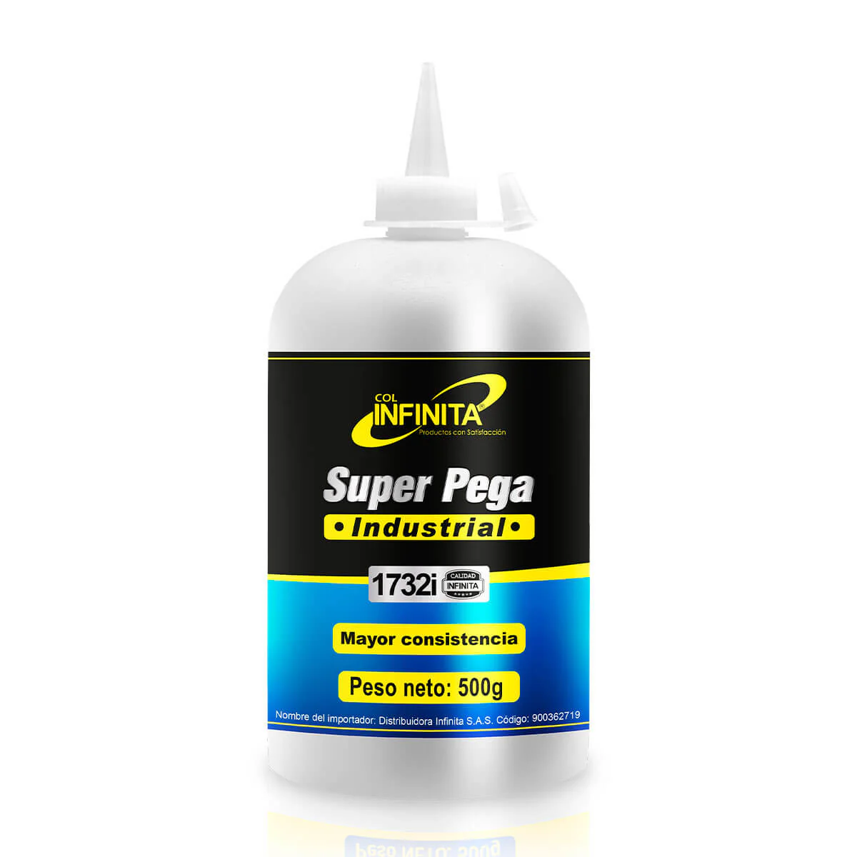 Super Pega Industrial de 500 gramos marca Infinita, formulado con cianocrilato para ofrecer una fijación extra fuerte y de secado instantáneo. Diseñado para aplicaciones industriales y profesionales, este pegamento garantiza una unión resistente en múltiples superficies.