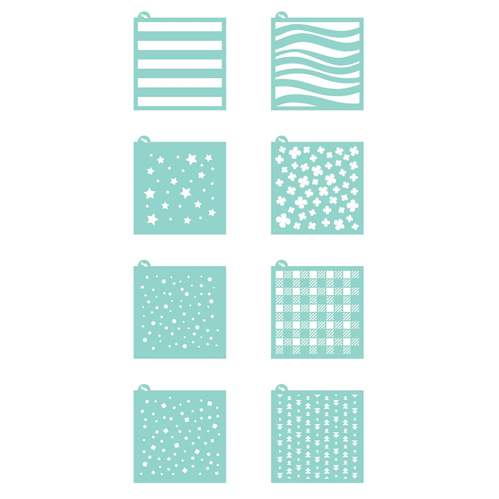 - 8 Stencils de 14 X 14 cm.