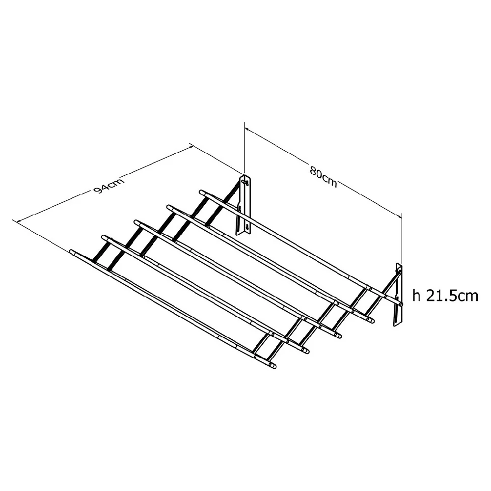 Descripción técnica: Tendedero de pared duplex 80 cm de ancho. Al expandirlo hacia el frente mide 94 cm de profundidad aprox. No utilizar detergentes clorados para su limpieza