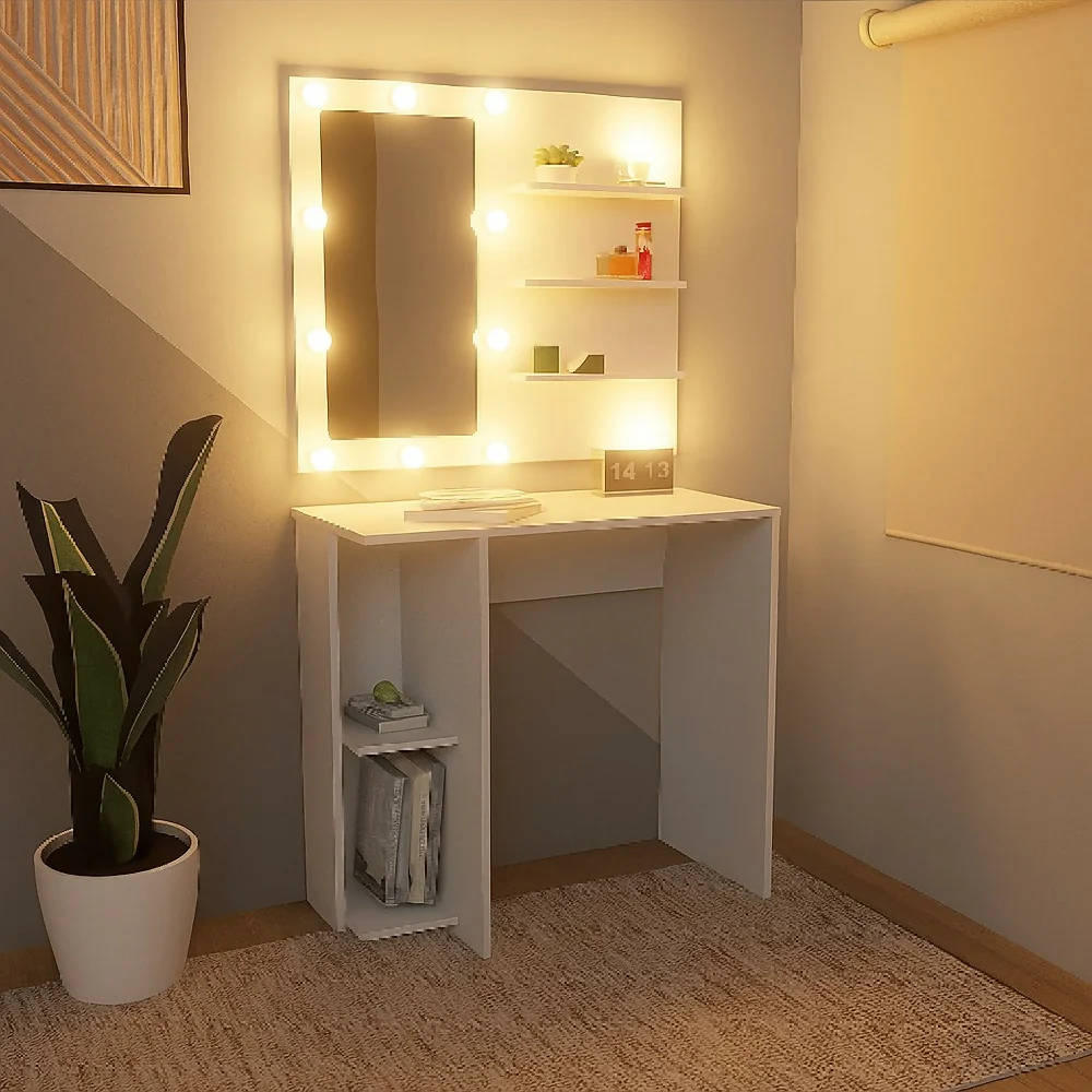 ¡Tu espacio soñado en casa! Este combo elegante y funcional combina tocador estilo Hollywood con escritorio versátil.