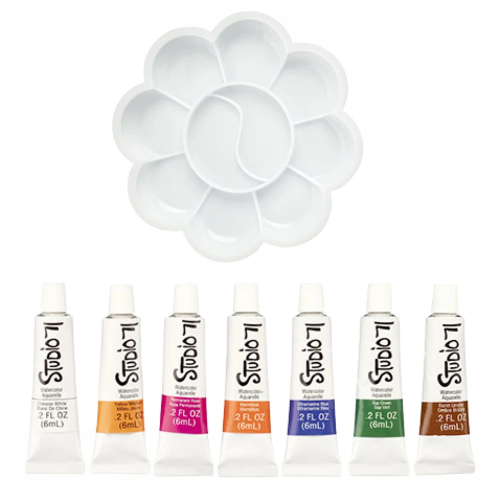 Los pinceles finos y planos le permiten afinar sus trazos, mientras que la paleta de plástico mantiene los colores separados y lo ayuda a dominar las mezclas personalizadas.