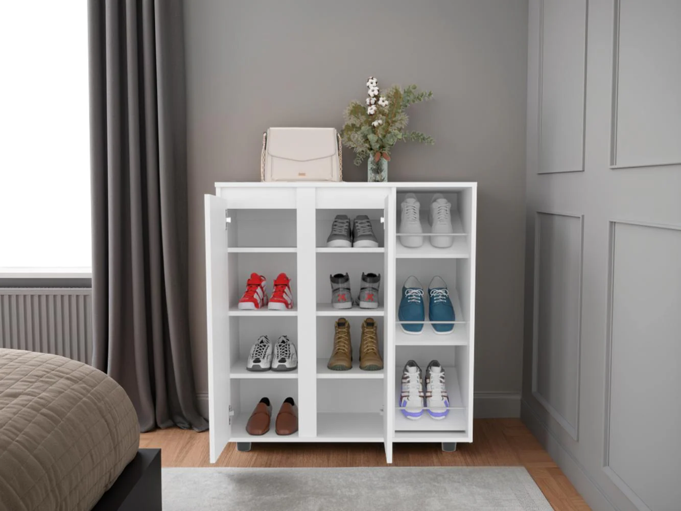 Zapatero Houck, Blanco Duqueza, con gran espacio para organizar zapatos ZF