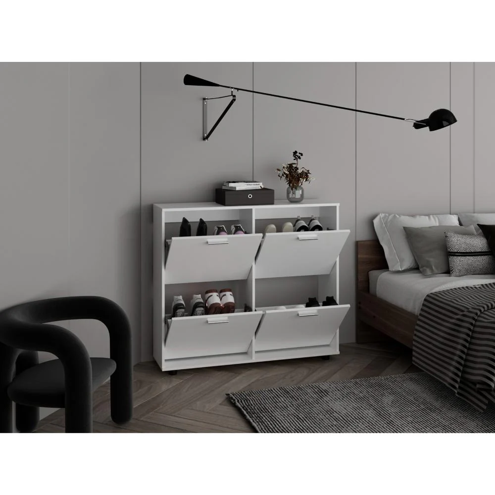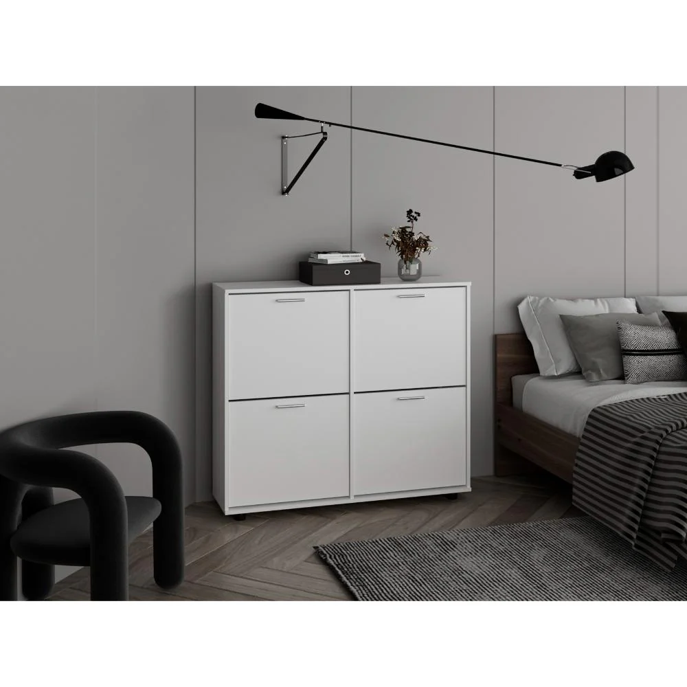 Mueble Auxiliar Zapatero, con 4 puertas abatibles y espacio para almacenar calzado.